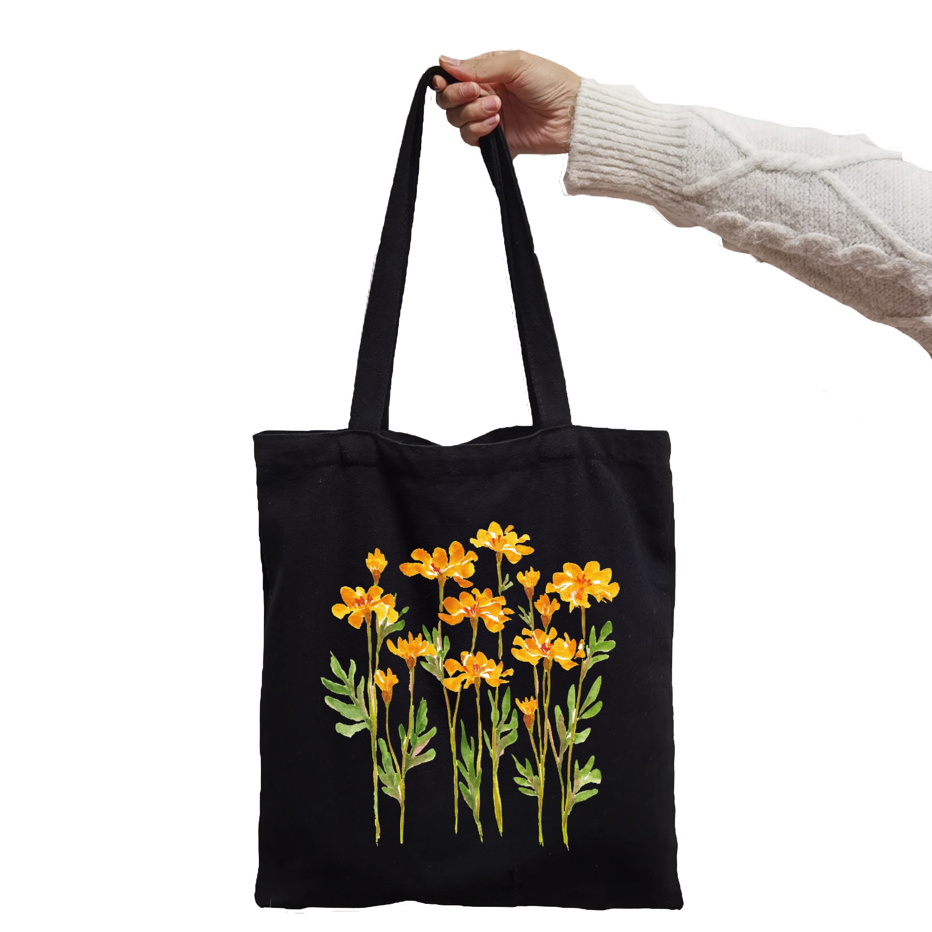 Flowers Lemonade Daisies花卉印花帆布袋单肩包折叠手提袋购物袋