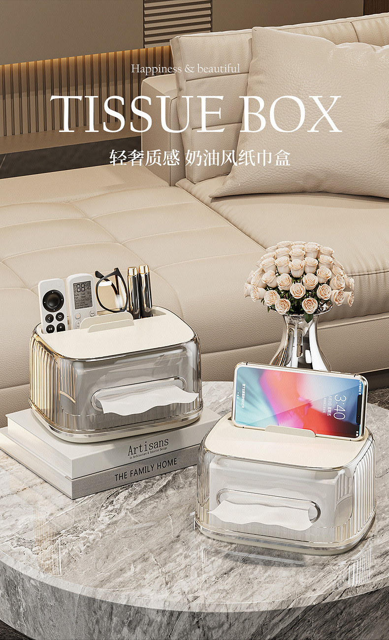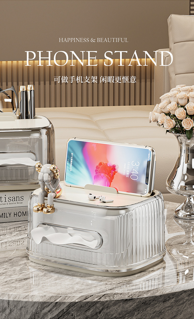 ins简约手机支架纸抽盒创意轻奢高级桌面纸巾盒客厅遥控器收纳盒