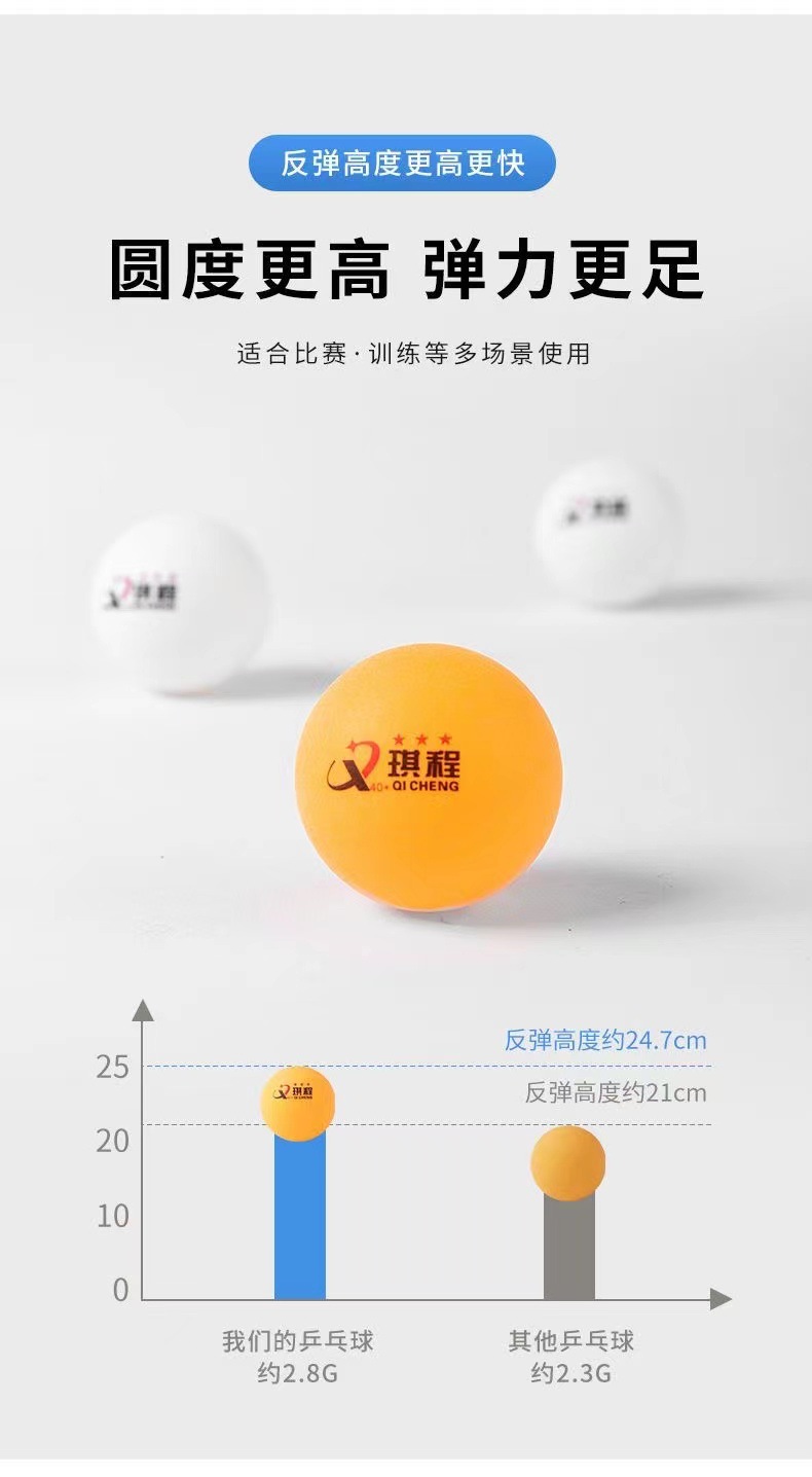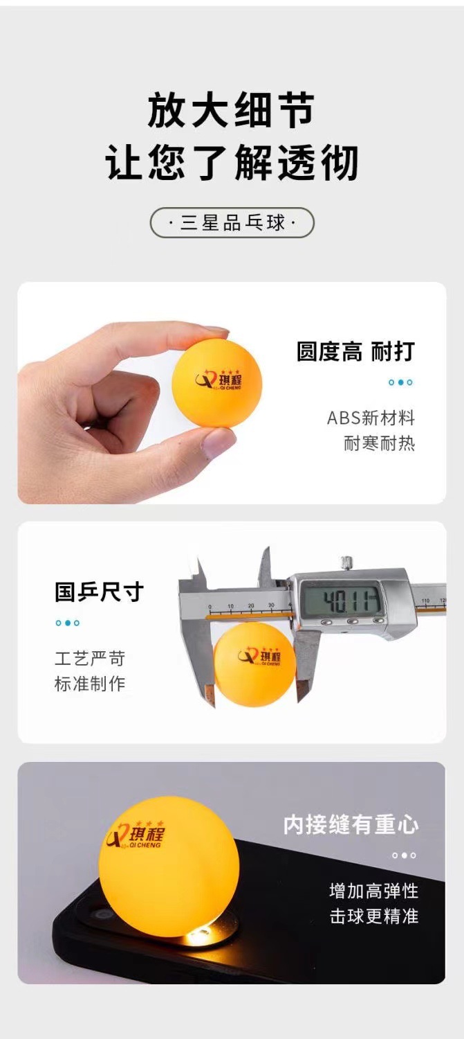 批发乒乓球三星袋装新材料ABS40+高弹力三星球批发琪程三星厂家