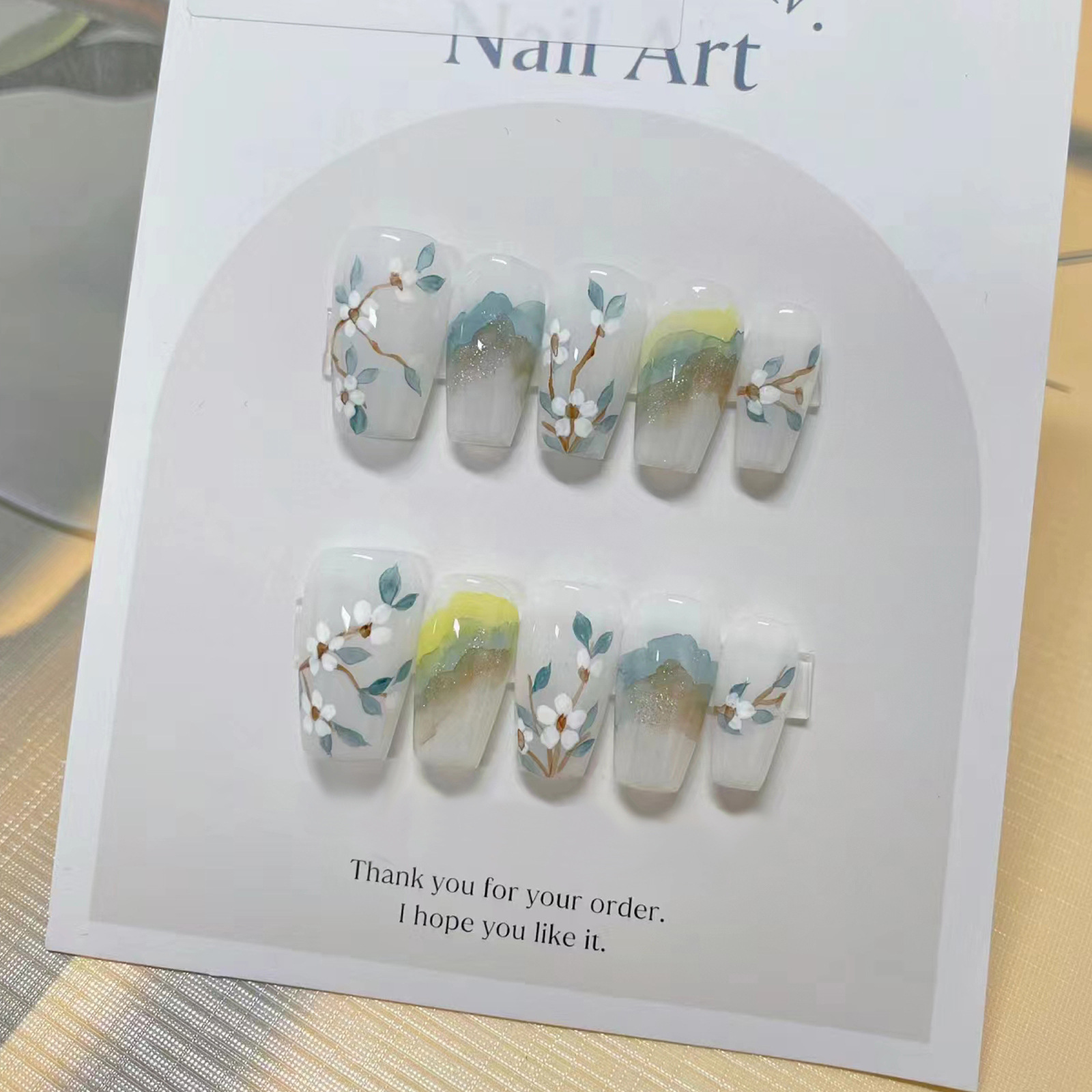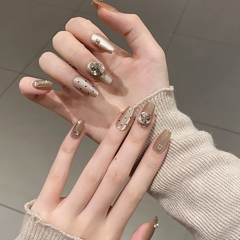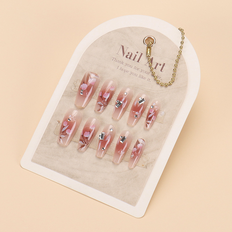 爆款穿戴甲高级感夏季手工美甲片水钻花朵猫眼渐变假指甲贴片新品