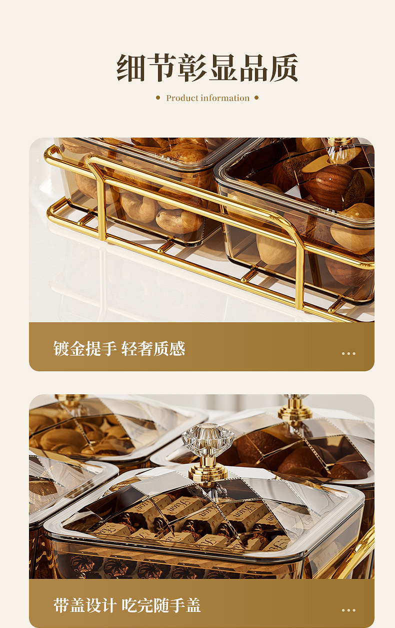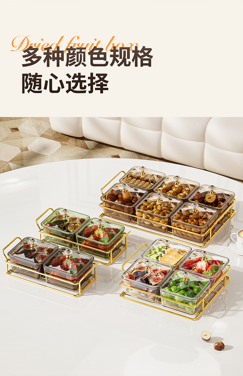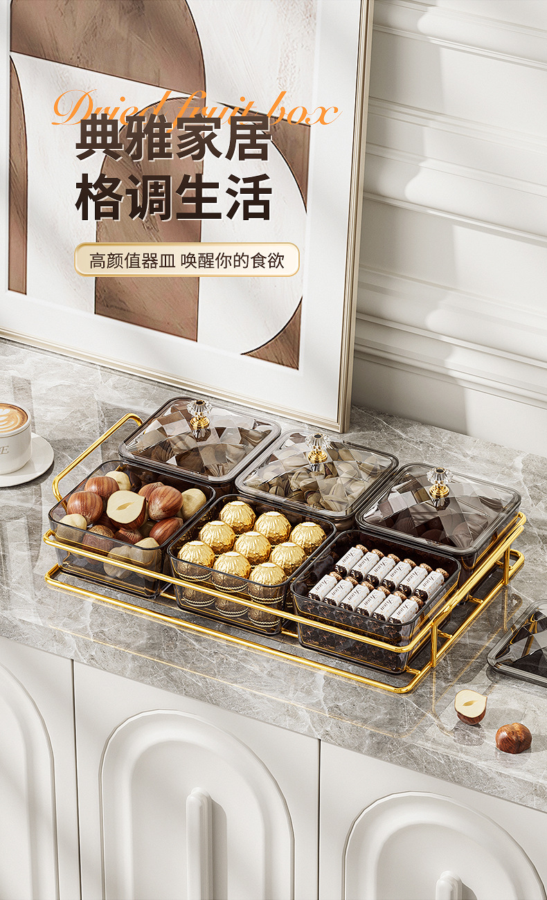 家用零食干果碟塑料点心盘分格果盘糖果盒轻奢透明带盖加托盘客厅