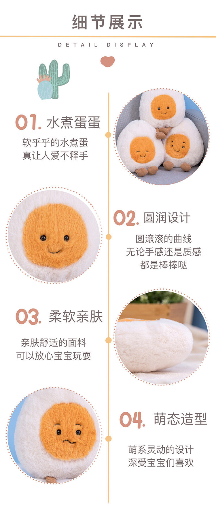 趣味水煮蛋毛绒玩具jellycat公仔玩偶娃娃可爱网红礼物批发跨境