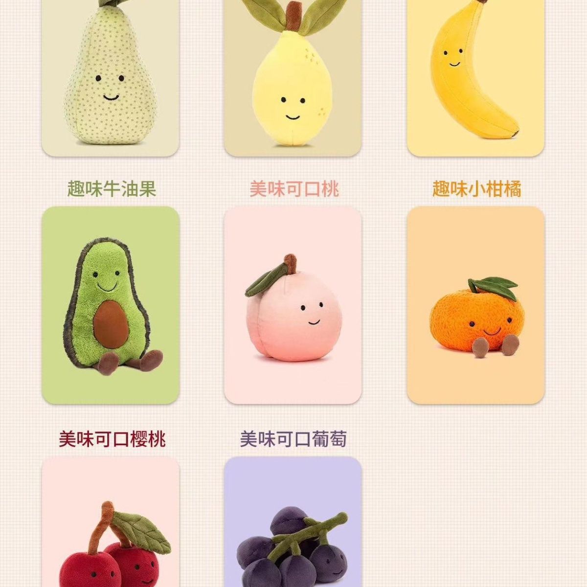 原jellycat水果蔬菜系列香焦玉米豌豆樱桃毛绒葡萄玩偶安抚玩具