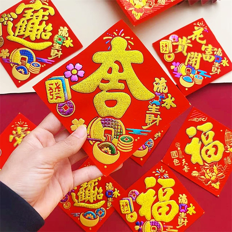 2026新年绒布小福字门贴马年春节装饰对联过年背胶迷你小号福贴纸