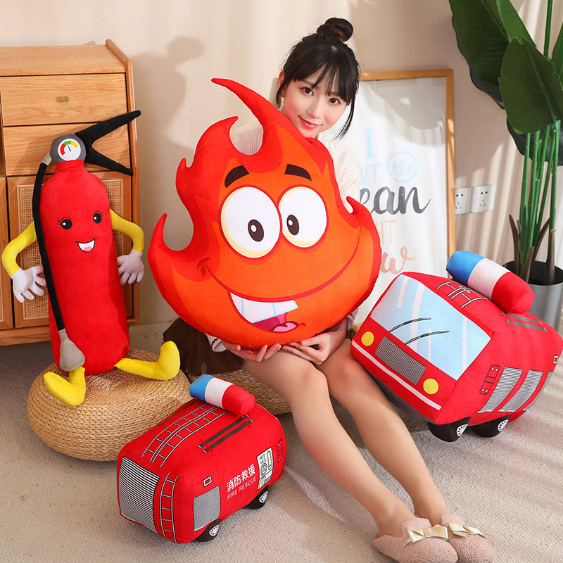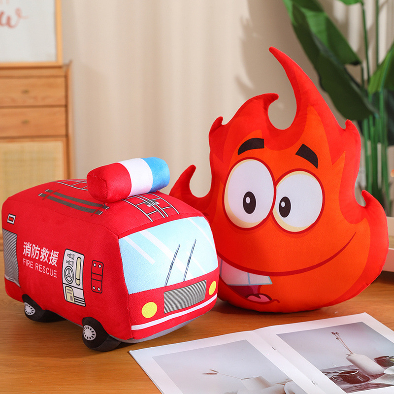 跨境卡通消防系列抱枕毛绒玩偶公仔抓机店兑换玩具毛绒卡通汽车