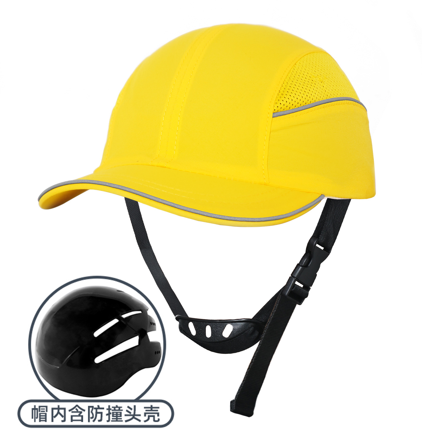 EN812头壳内衬车间作业安全防摔鸭舌帽 轻型含下巴带防撞棒球帽