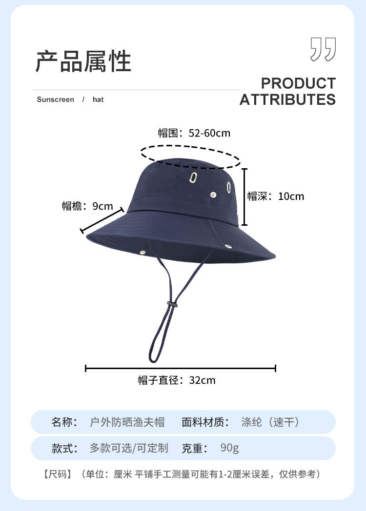 春夏季涤纶防撞头壳帽女大帽檐遮阳渔夫帽en1078防撞认证upf50+