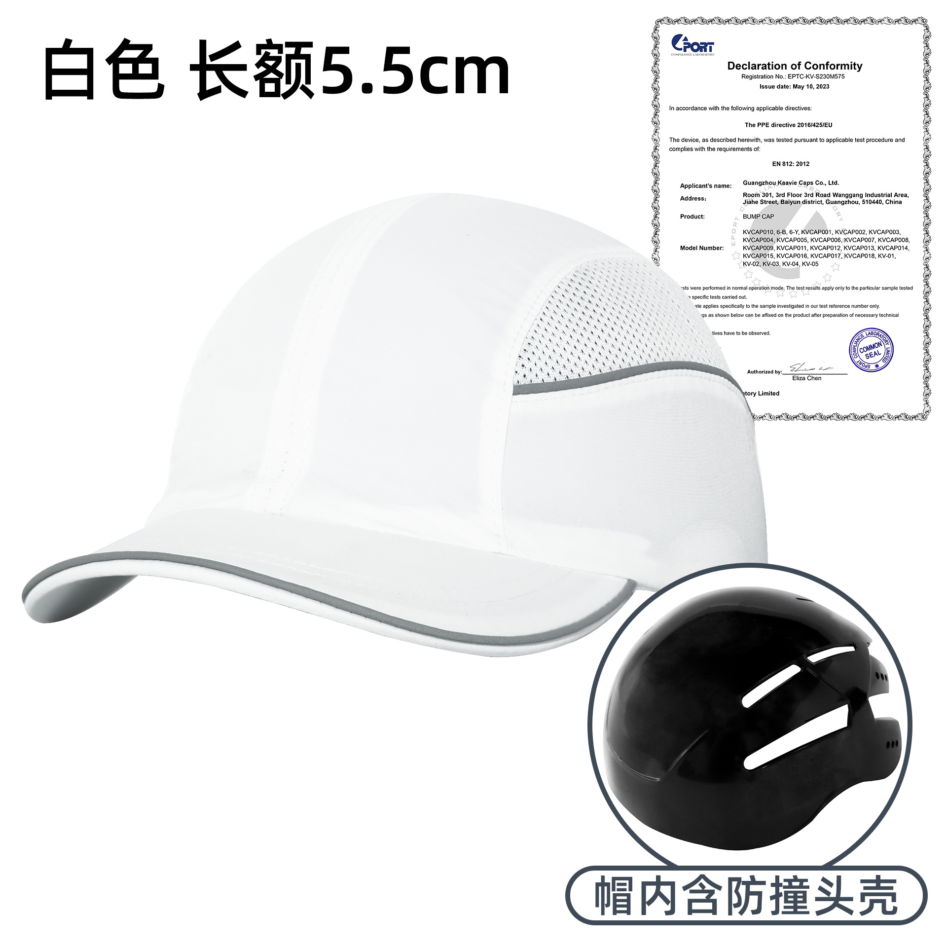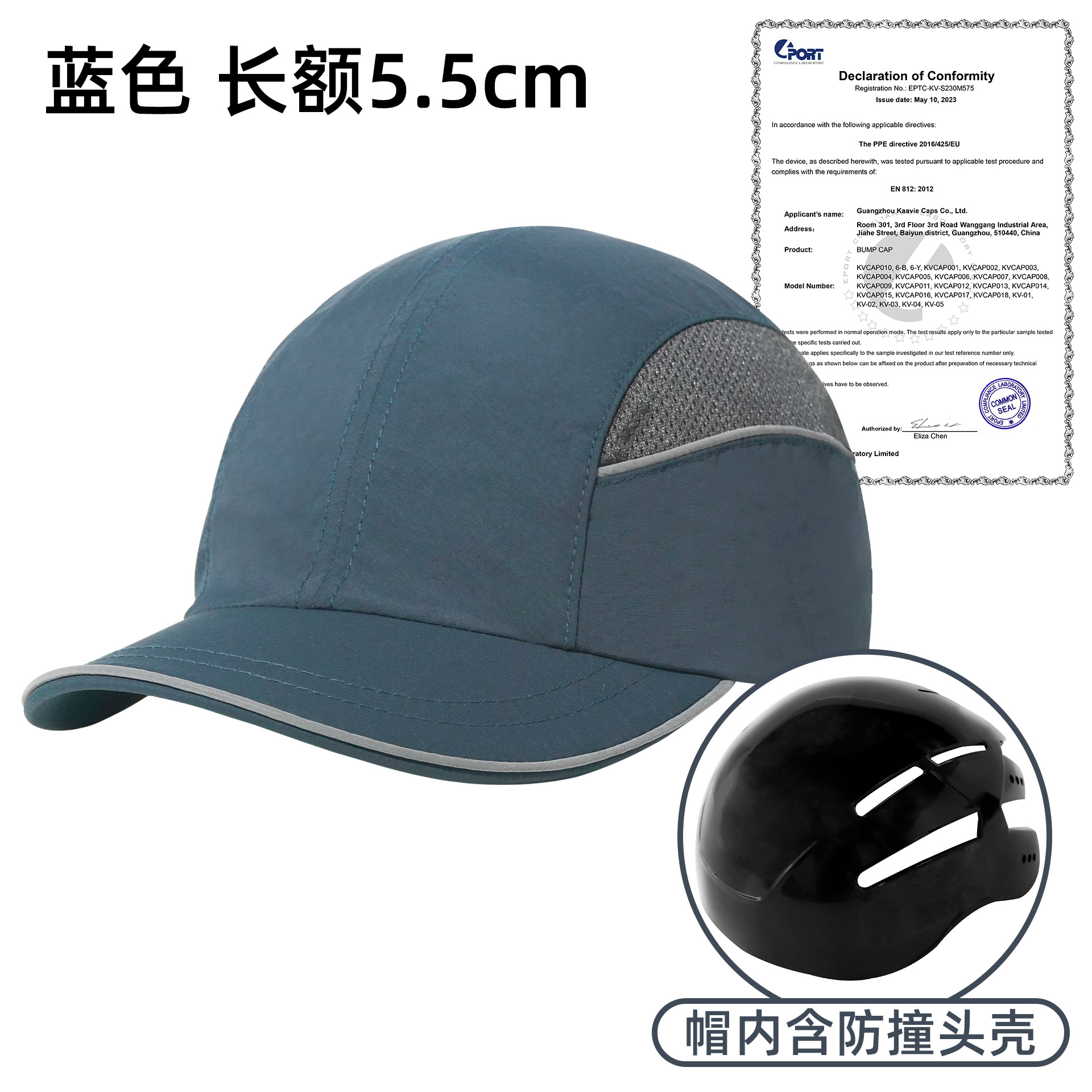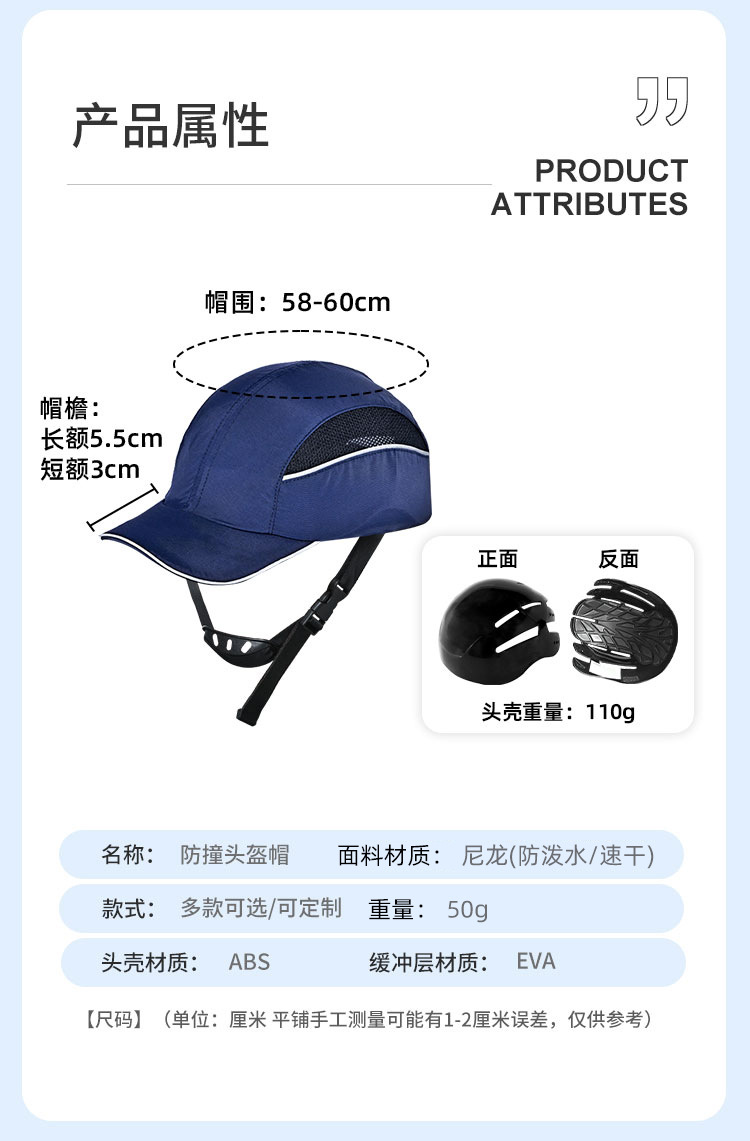 轻型阻燃防静电防撞棒球帽EN812头壳内衬车间作业安全防摔鸭舌帽