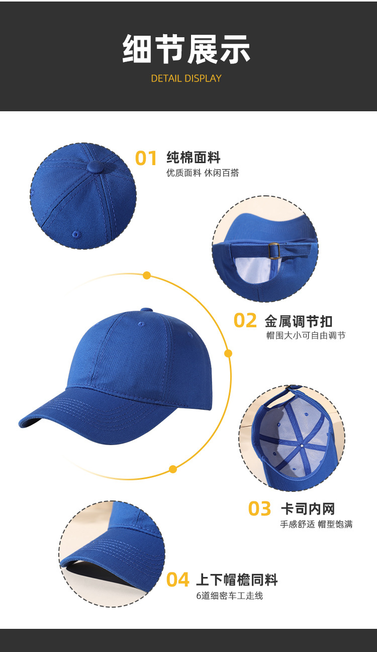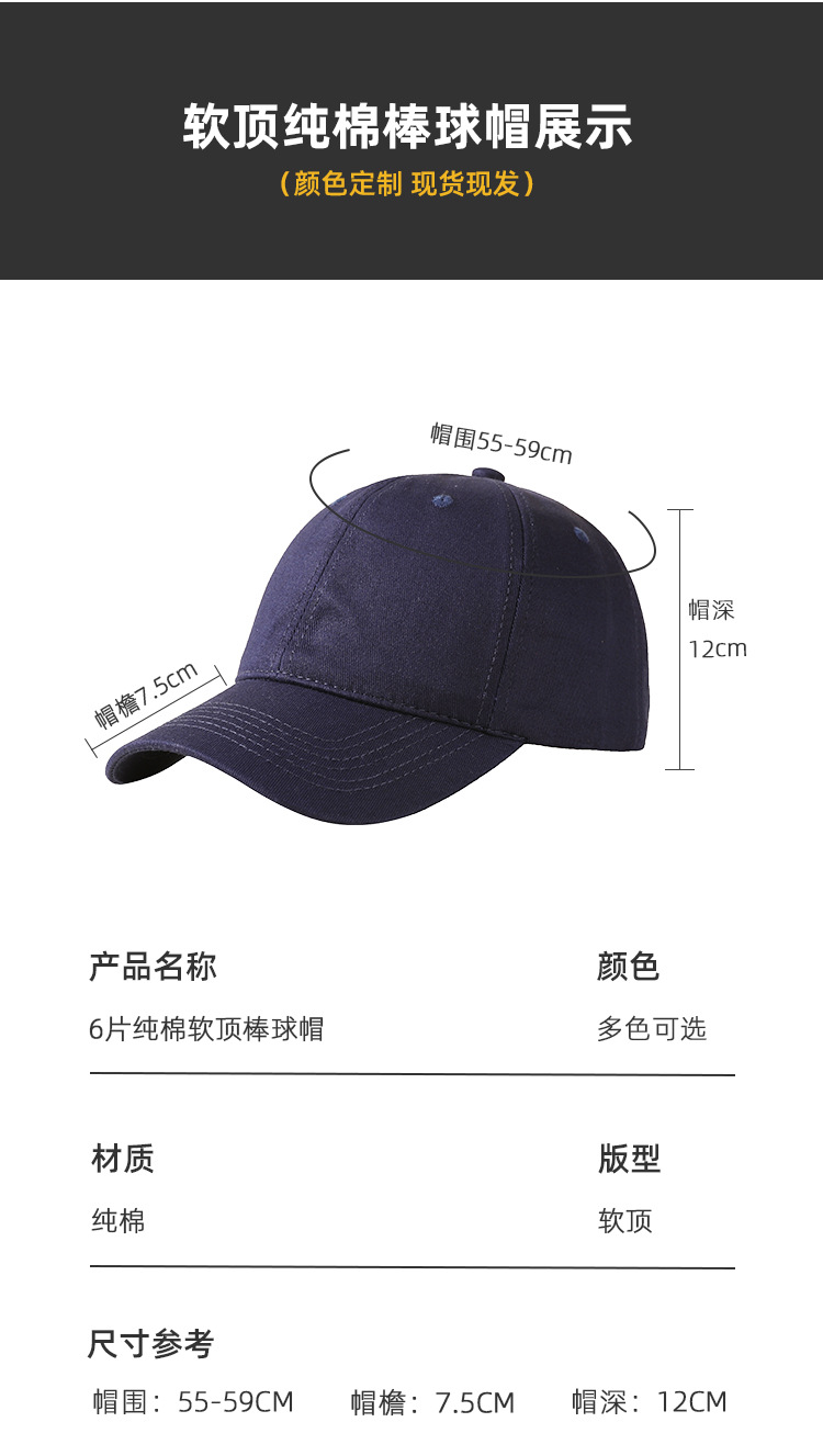 跨境现货六片纯棉棒球帽可定制印刷刺绣logo户外男女遮阳鸭舌帽子