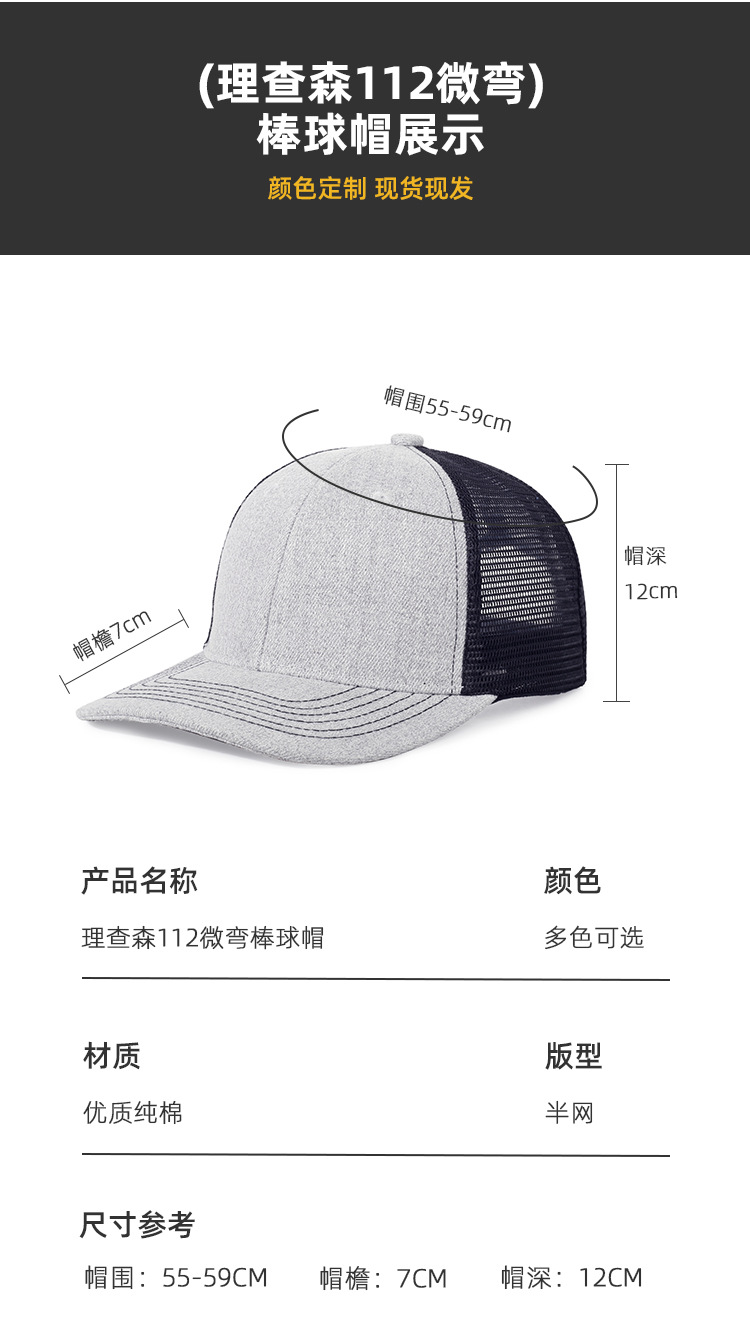 跨境理查森微弯112棒球帽现货供应印logo卡车司机防晒透气鸭舌帽