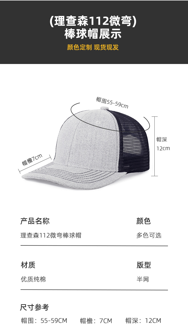 外贸光板卡车司机帽微弯网帽透气遮阳棒球帽理查森112款帽子男女