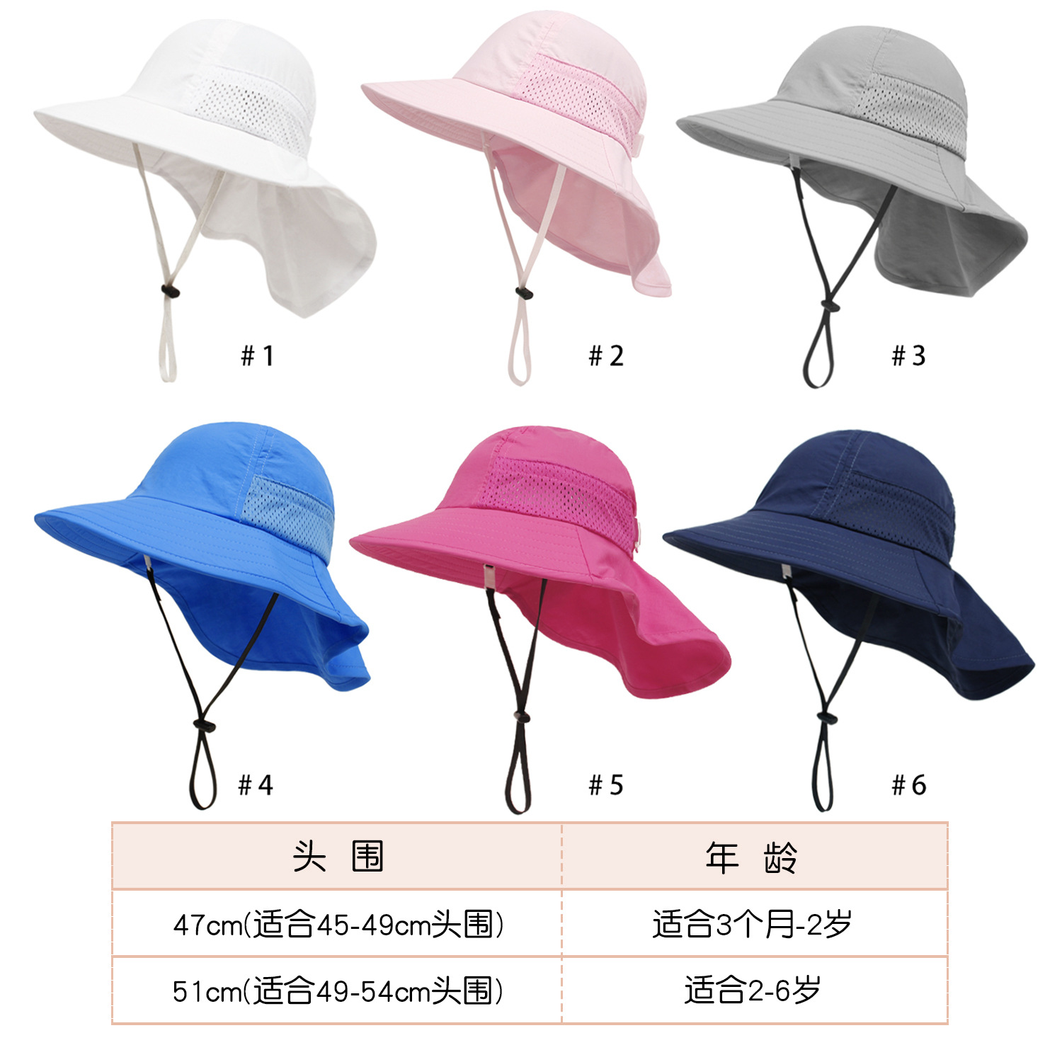 夏季纯色印花婴儿大檐帽女遮阳帽宝宝沙滩透气速干儿童防晒帽外贸