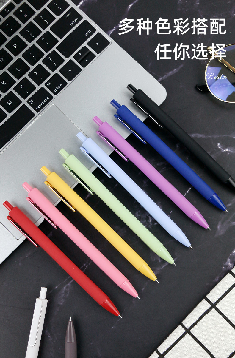 广告中性笔可加logo国色马卡龙水笔黑色签字笔学生用笔按压笔批发