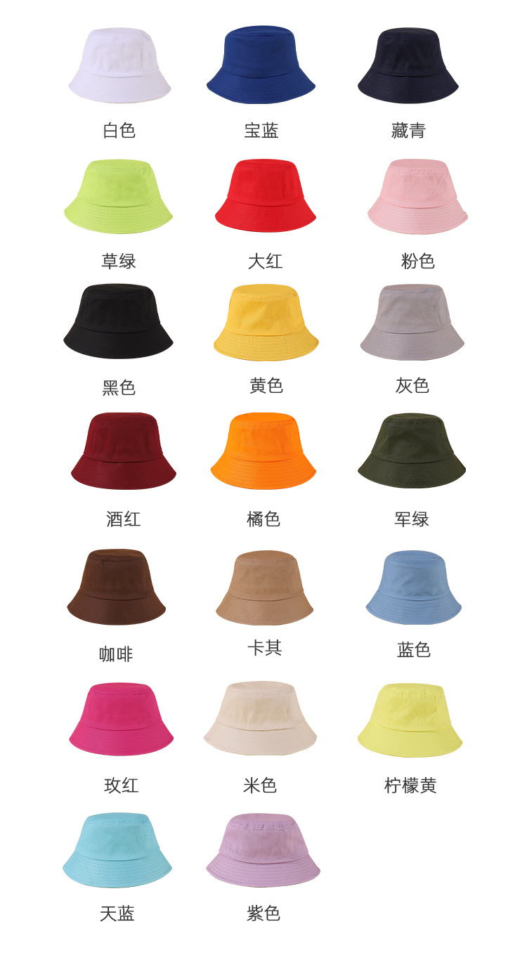 纯棉双针渔夫帽可刺绣印刷logo空白单面男女户外遮阳大檐盆帽跨境
