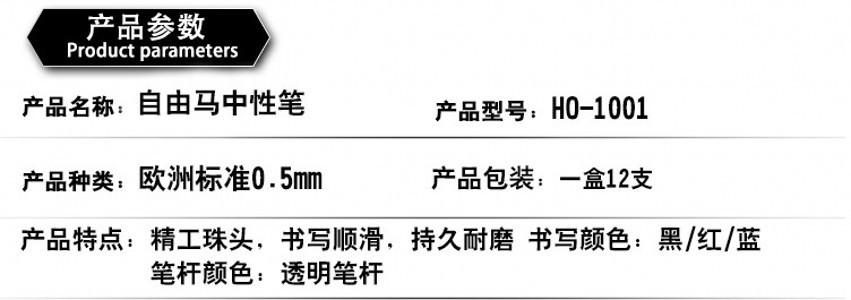 自由马1001签字笔中性笔速干不断墨学生用0.5mm水笔黑色红蓝笔