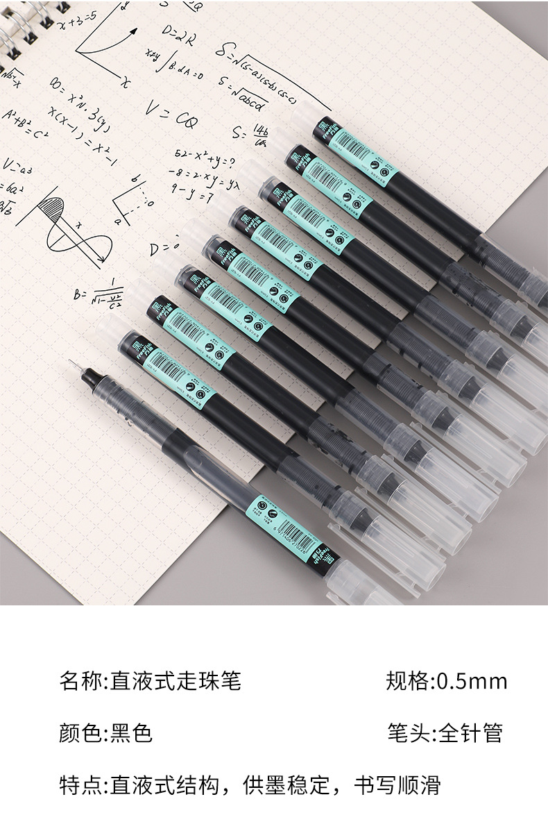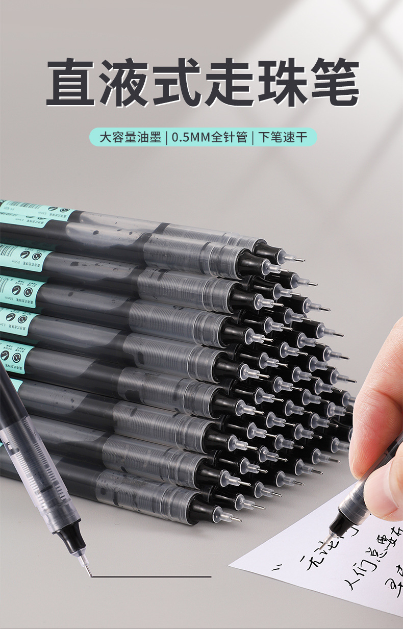 直液式走珠笔速干大容量刷题笔办公签字笔黑色0.5学生针管中性笔