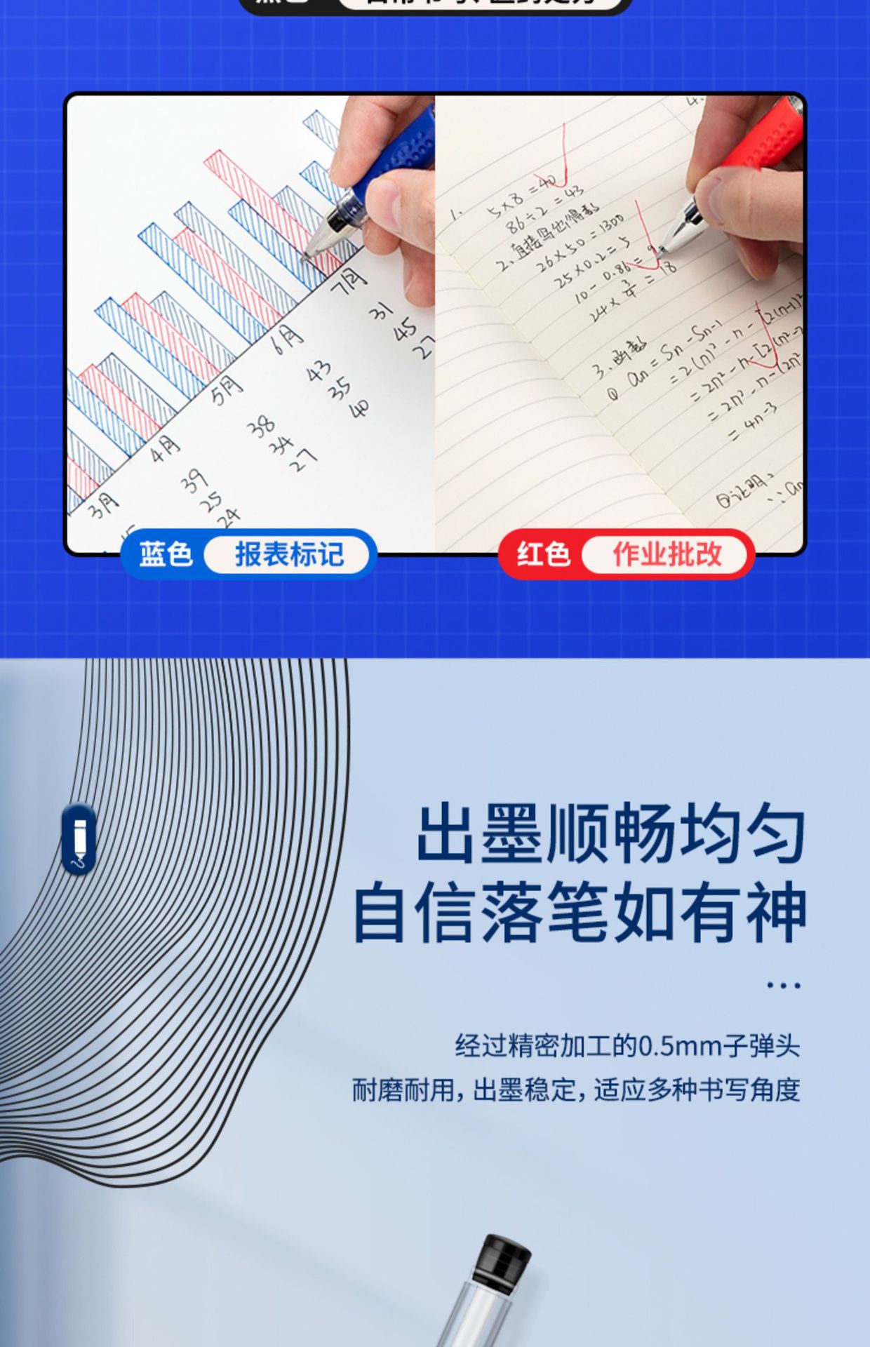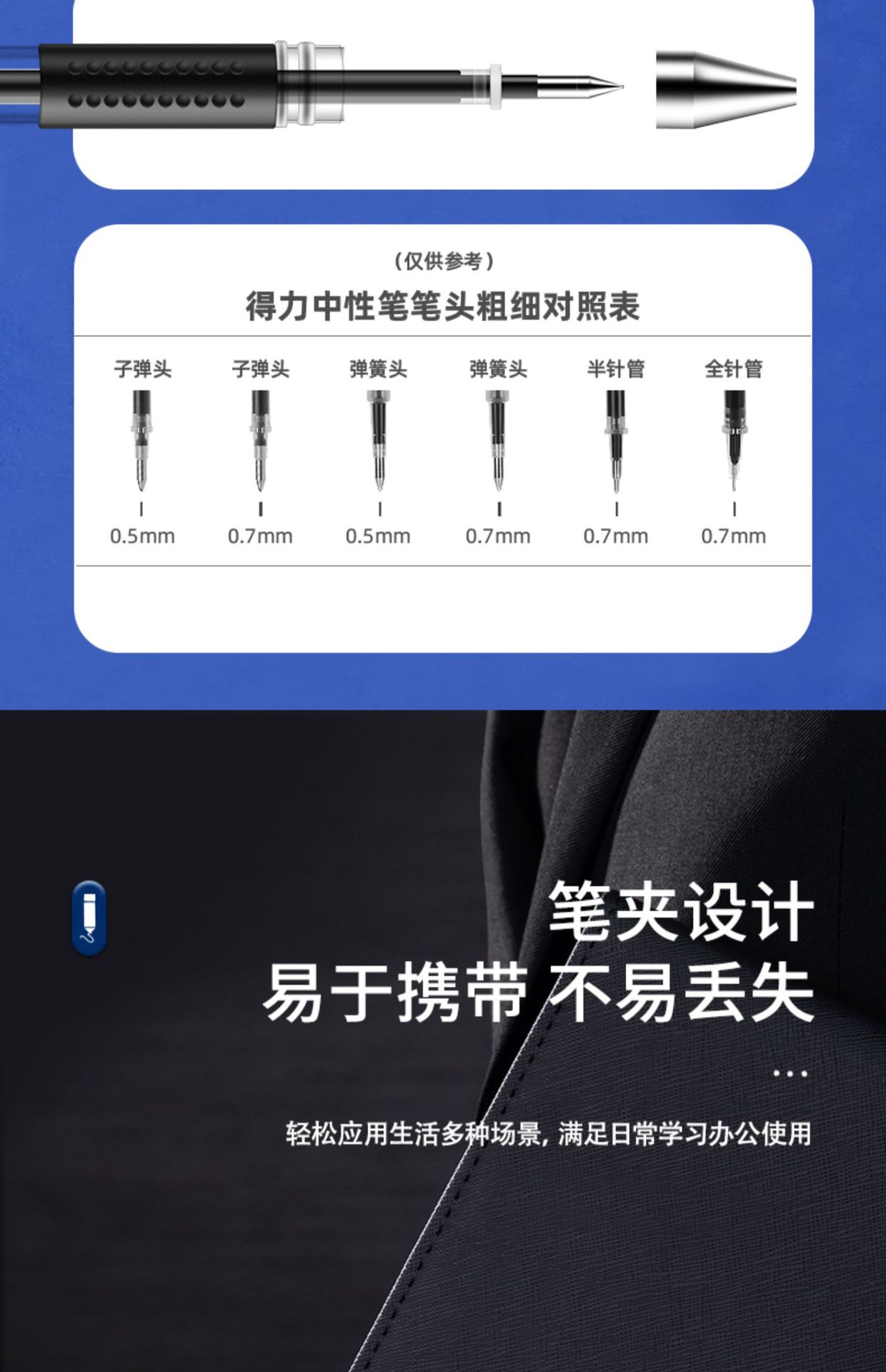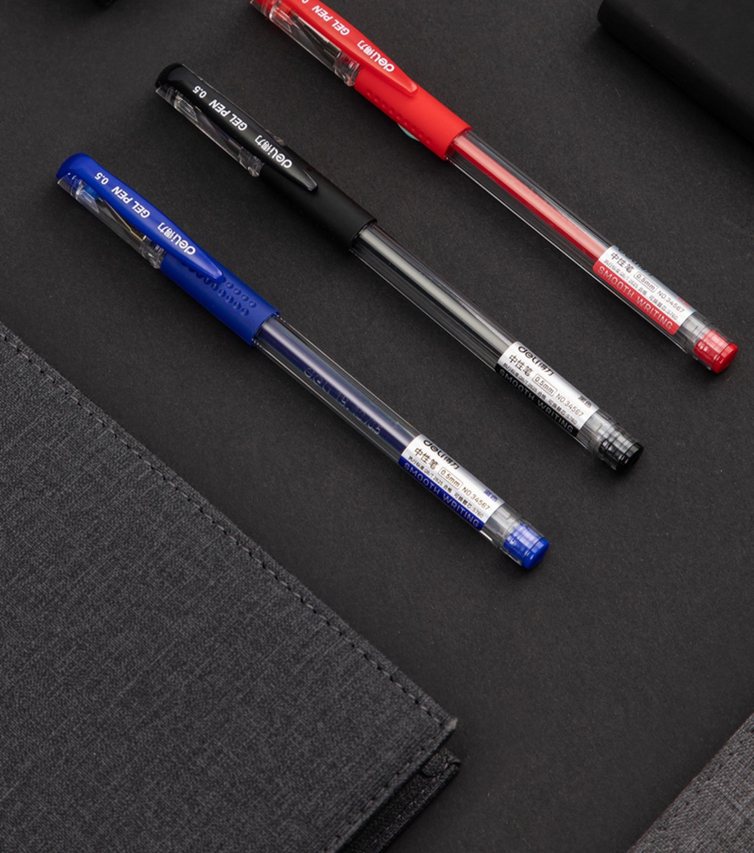 得力6600es中性笔黑色0.5mm子弹头拔帽水笔蓝红签字笔办公用学生