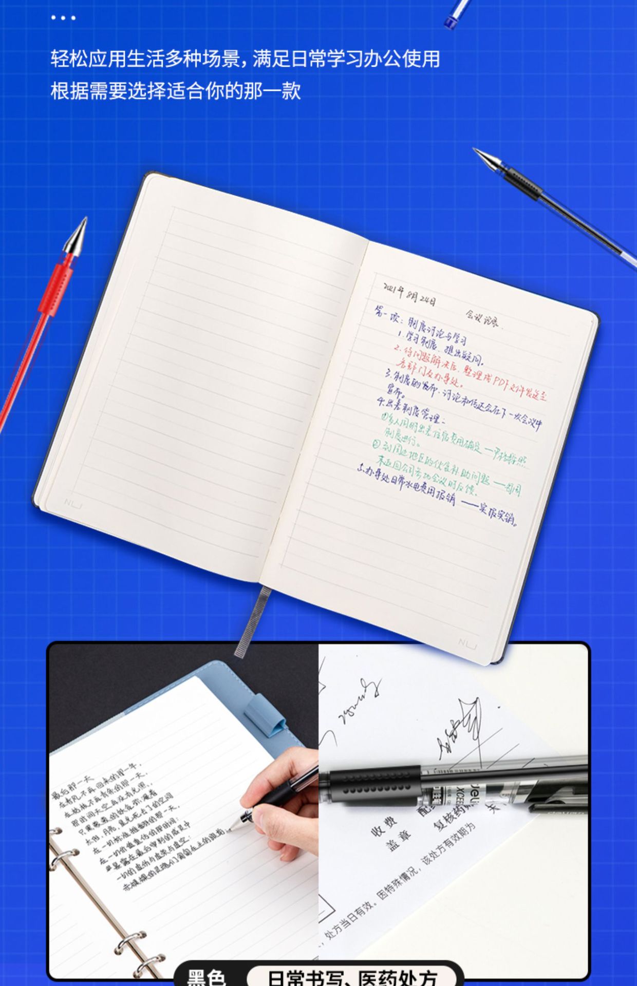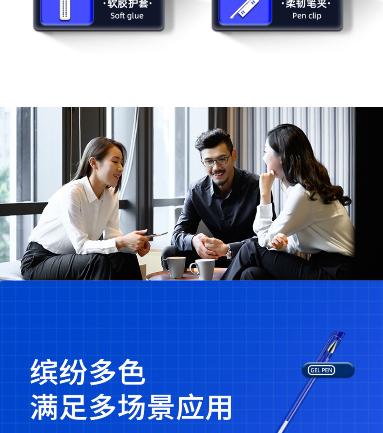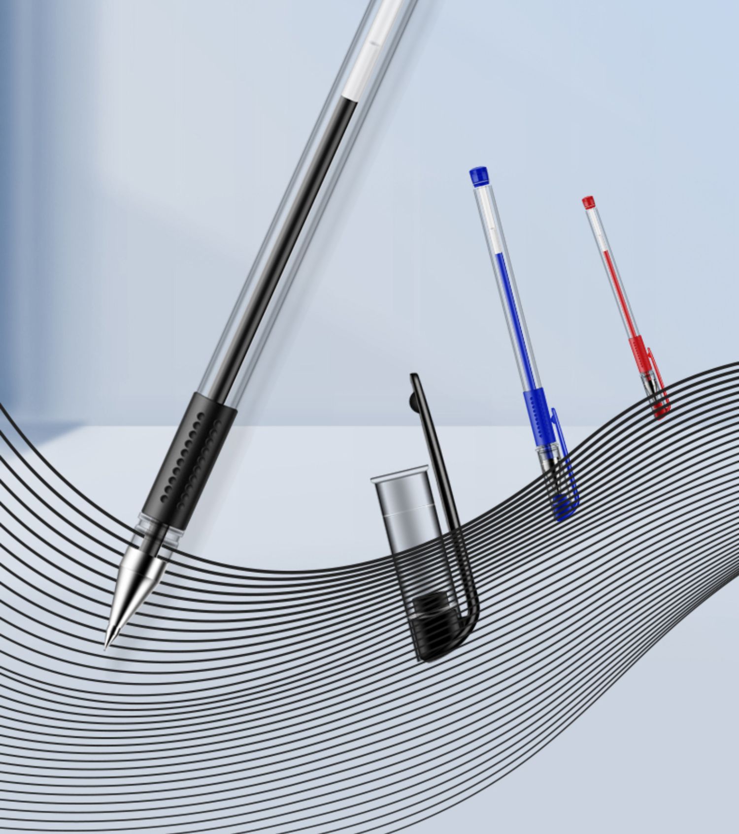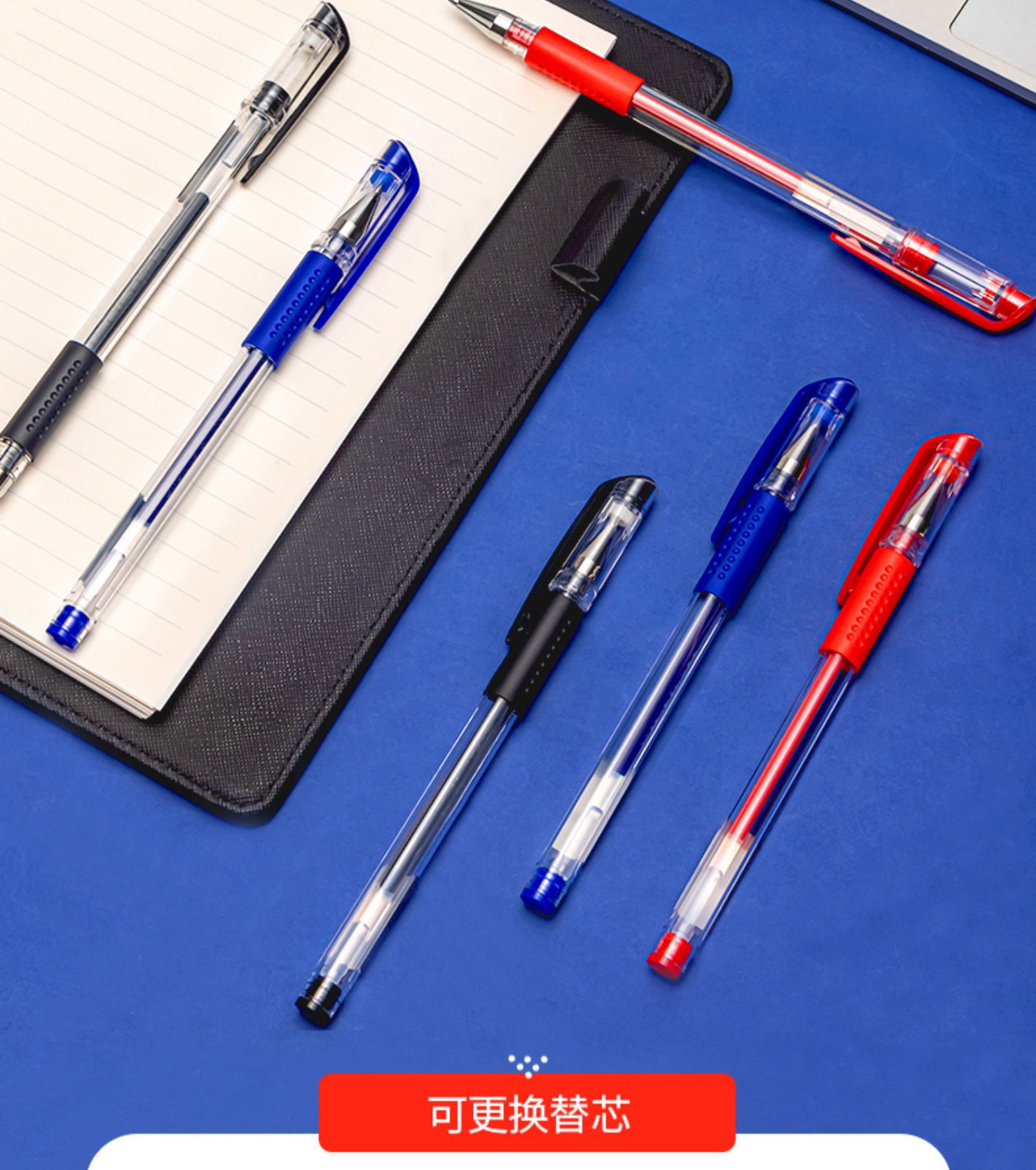 得力6600es中性笔黑色0.5mm子弹头拔帽水笔蓝红签字笔办公用学生