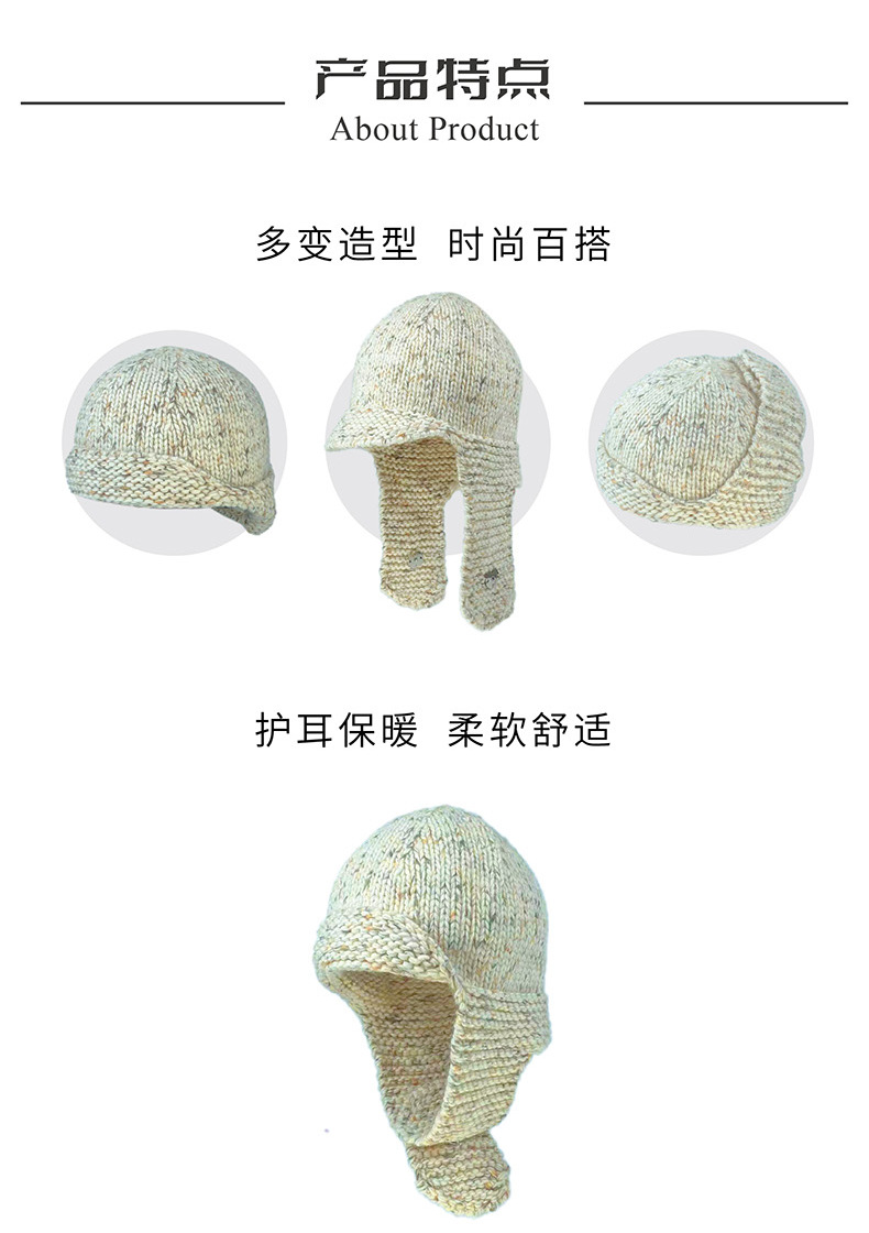 护耳毛帽子针织帽飞机帽女秋冬美式飞行防风帽毛线帽子滑雪雷锋帽