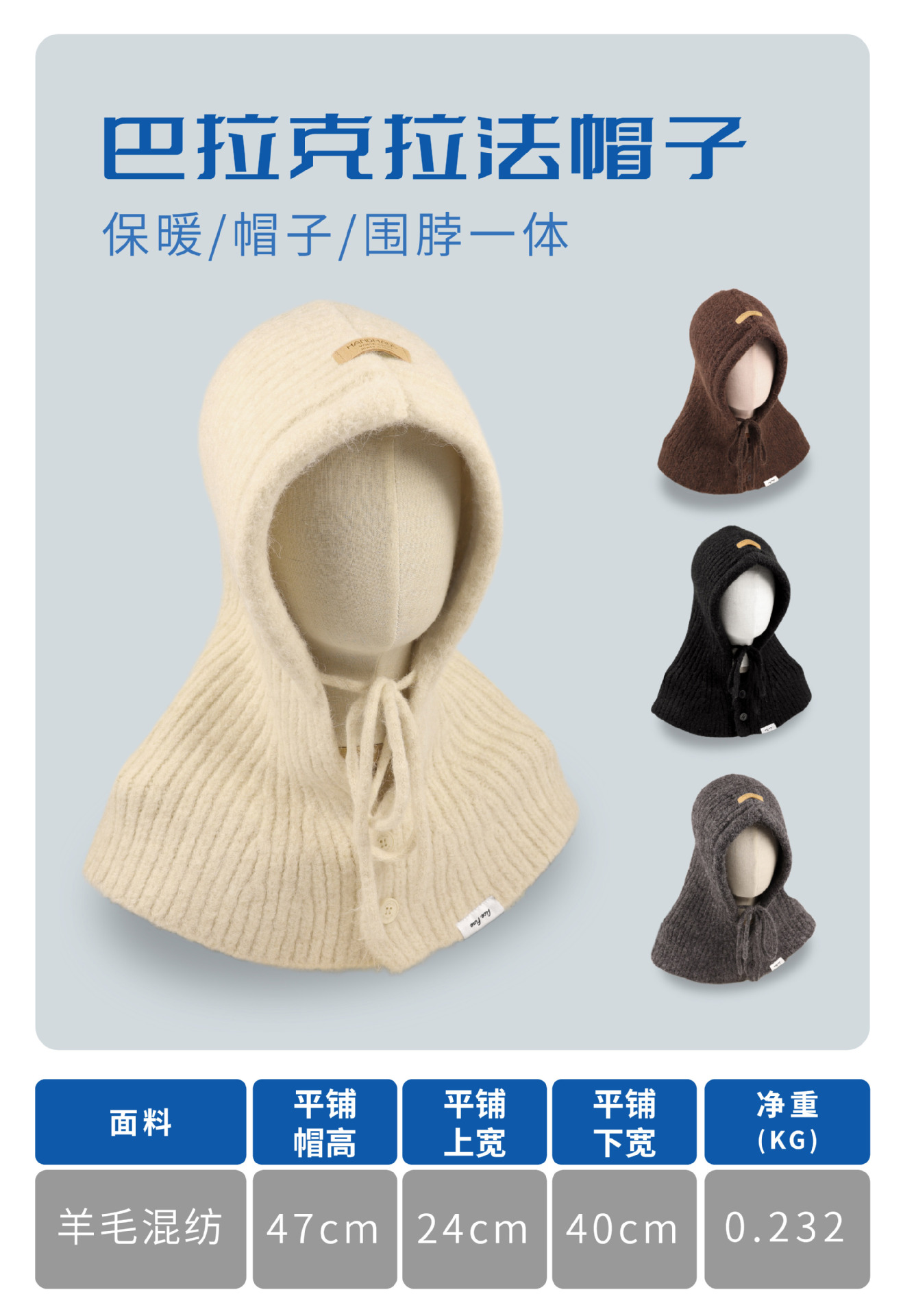 大头围巴拉克拉法帽子女秋冬针织连帽围脖一体护耳保暖披肩毛线帽