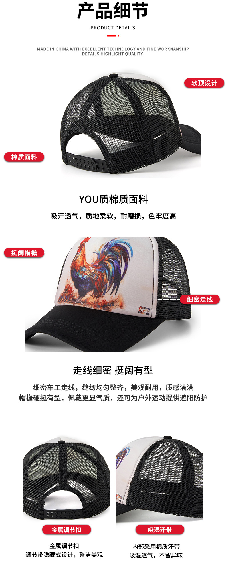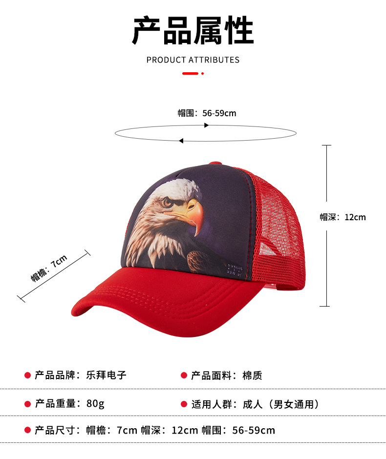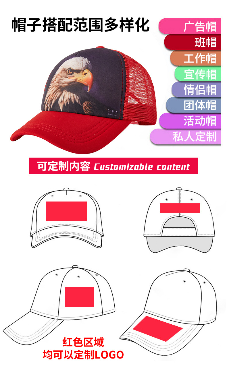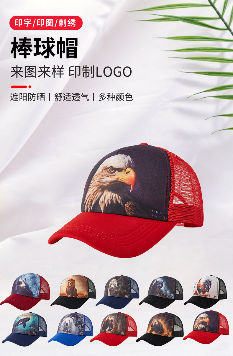 定制满印海绵半网遮阳帽个性网眼动物印花卡车司机棒球帽防晒户外