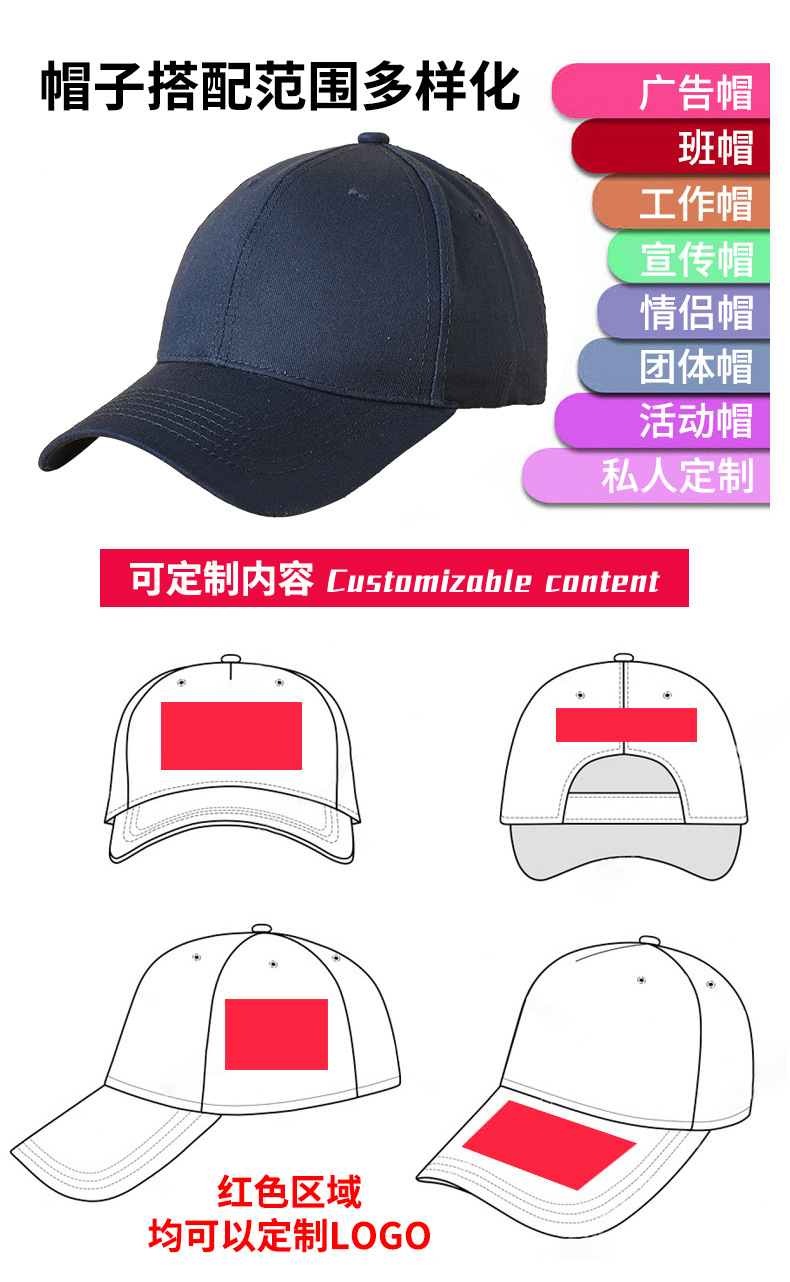 定制印logo6片硬衬棒球帽刺绣亲子鸭舌帽男女款防晒帽遮阳帽批发
