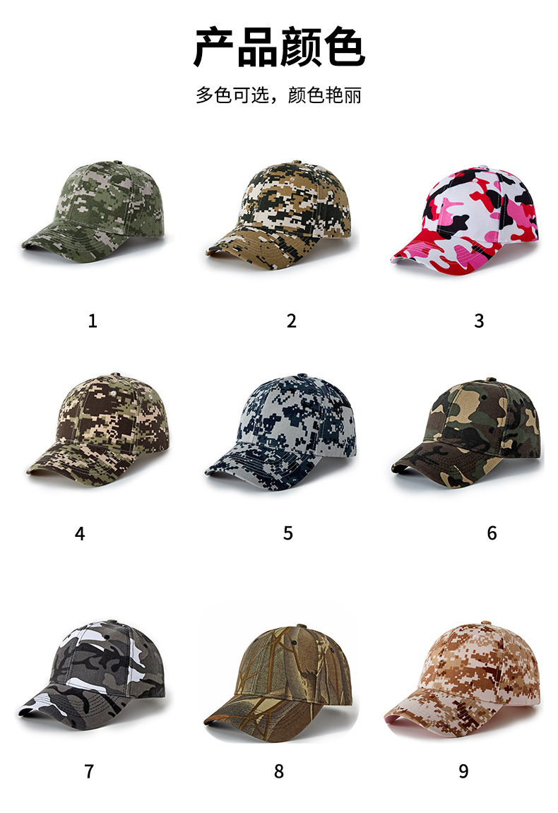现货外贸户外迷彩棒球帽夏令营装备夏季遮阳帽男女战术棒球帽