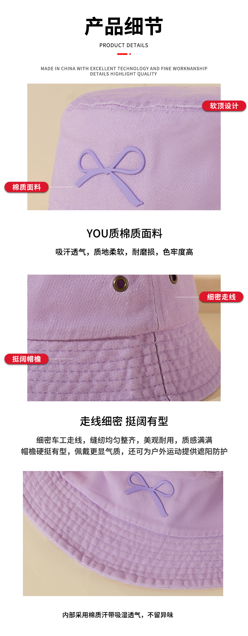 现货水洗渔夫帽硅胶蝴蝶结ins潮流盆帽女休闲团体出游百搭帽子