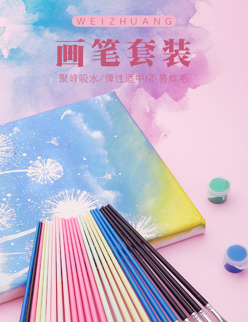 卫庄勾线数字油画笔尼龙毛涂鸦涂色颜料画刷幼儿园描线水彩水粉笔