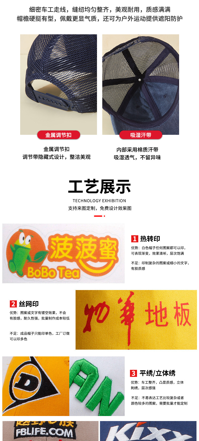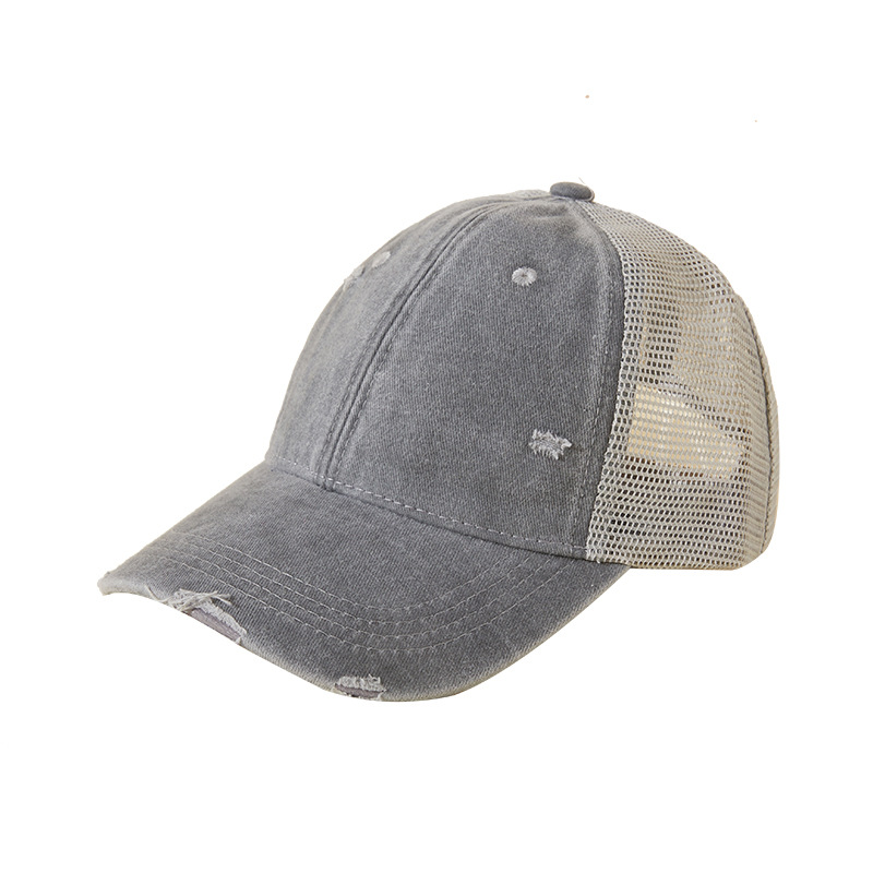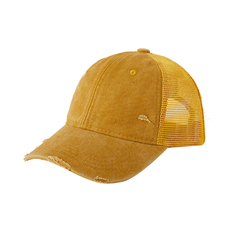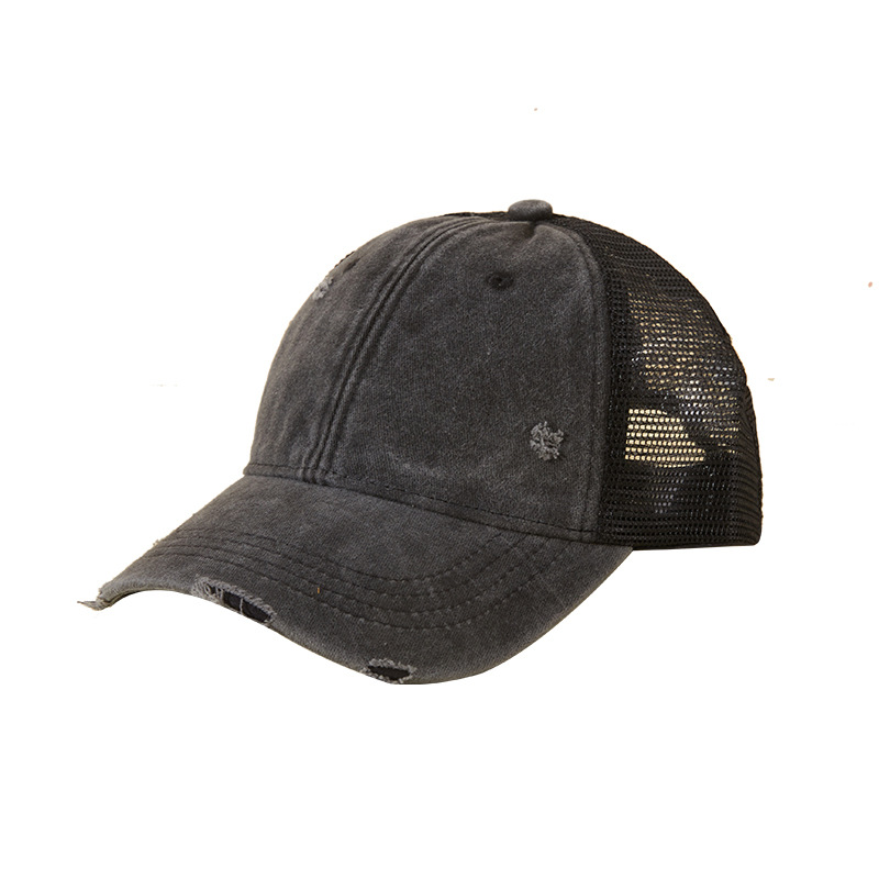 新款水洗网帽破洞 刺绣DIY鸭舌帽防晒帽女款户外遮阳帽批发