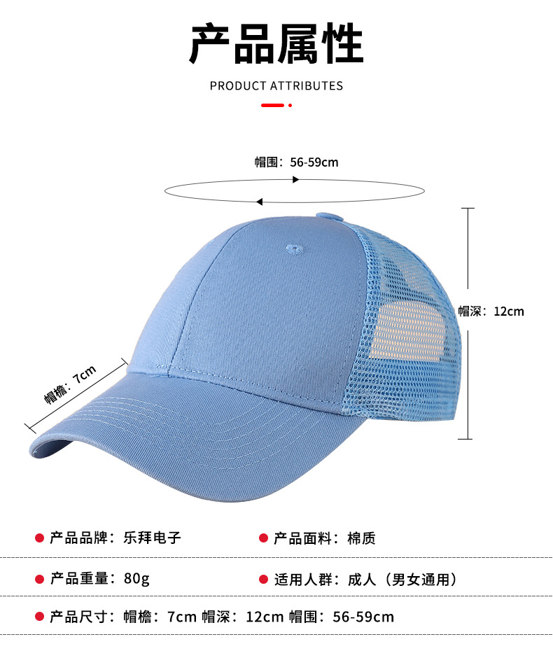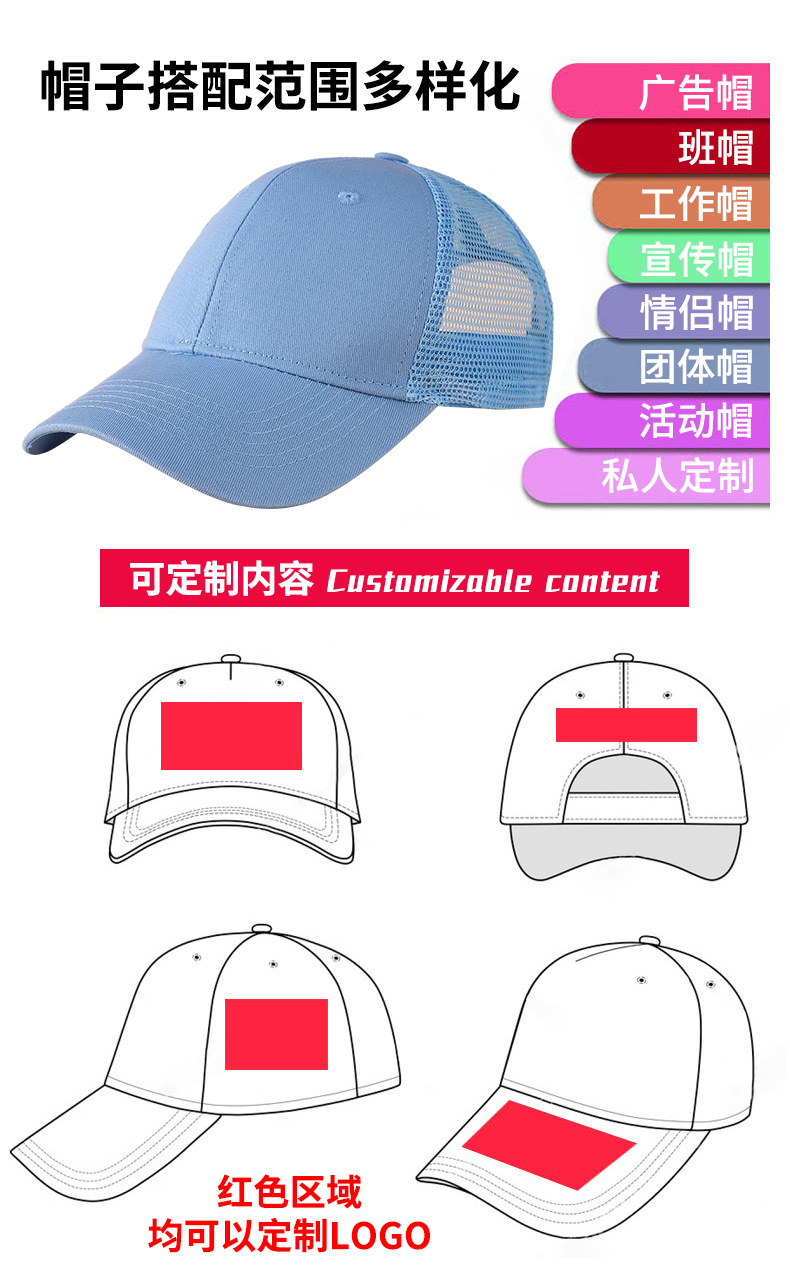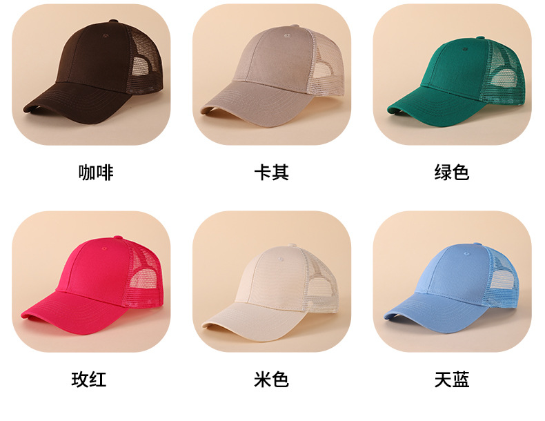 6片半网棉质棒球帽韩版新款休闲鸭舌复古旅游户外帽子可定制logo