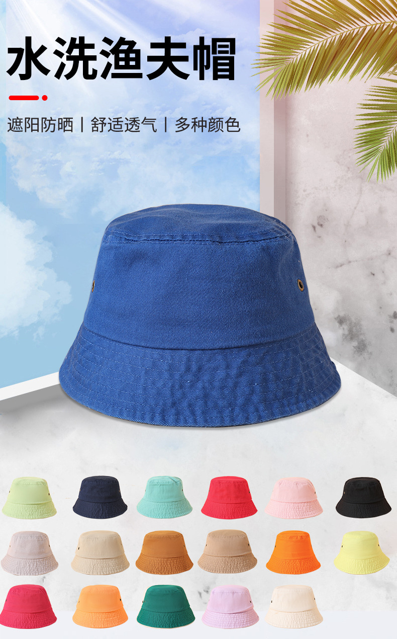 水洗棉质渔夫帽春夏韩版新款渔夫帽可定制logo复古旅游户外盆帽
