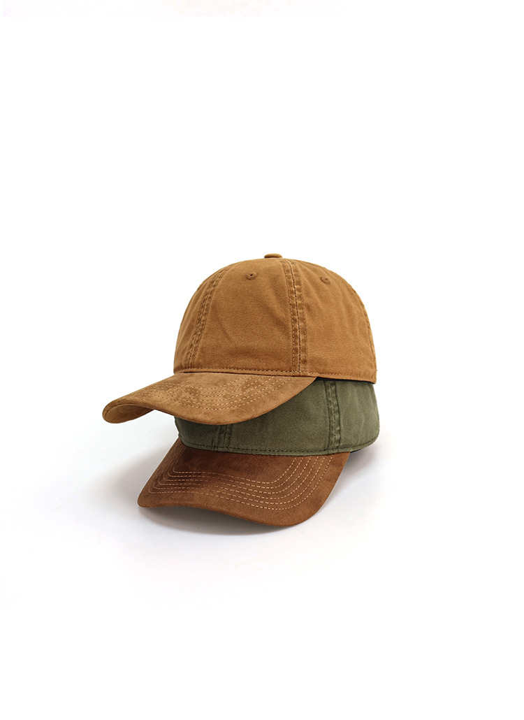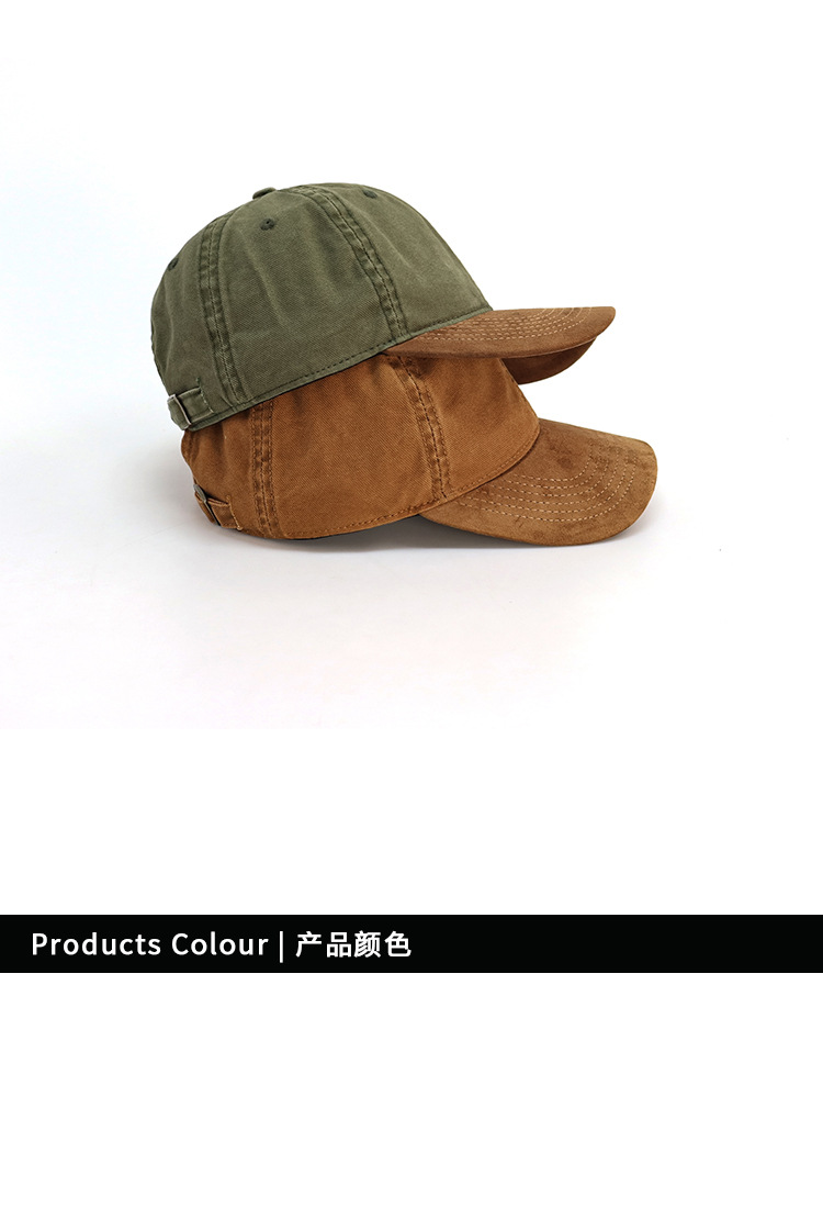 日系麂皮拼接鸭舌帽女撞色帆布棒球帽男夏季软顶帽子新款春款帽子