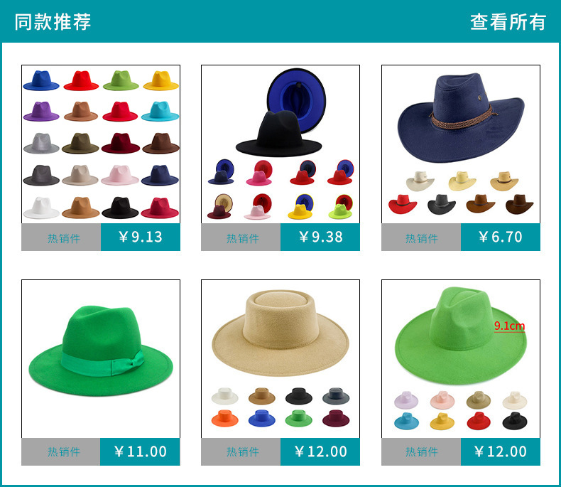 60色纯色爵士礼帽定制英伦风复古毛呢帽成人刺绣logo毛毡帽子批发