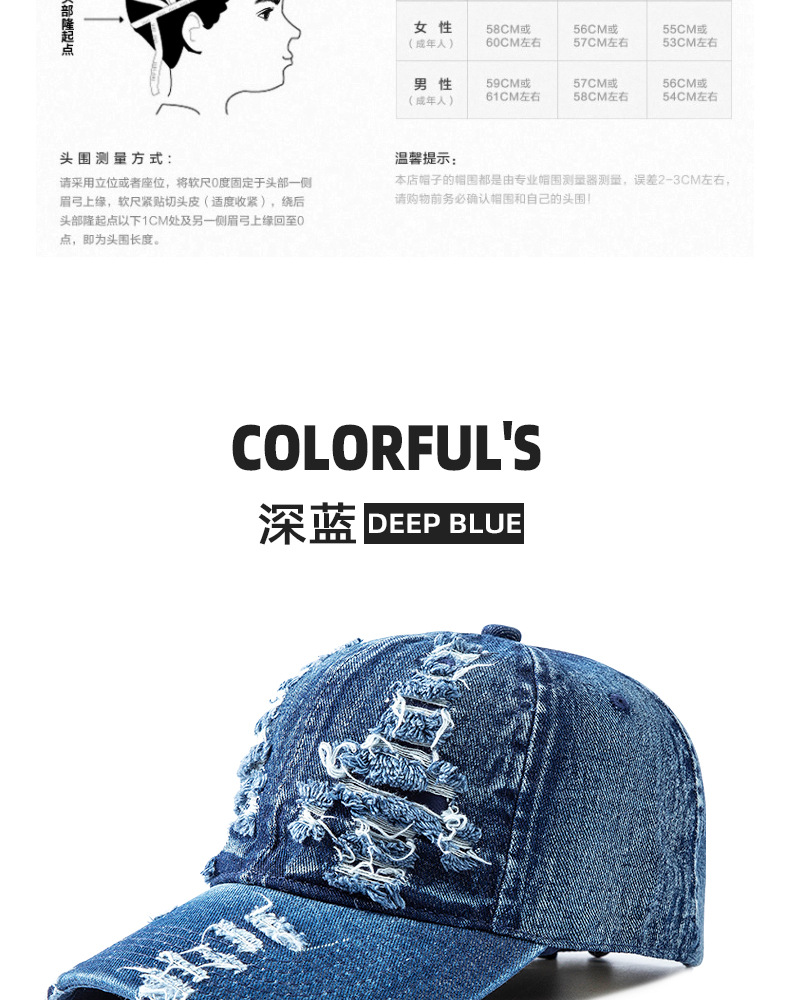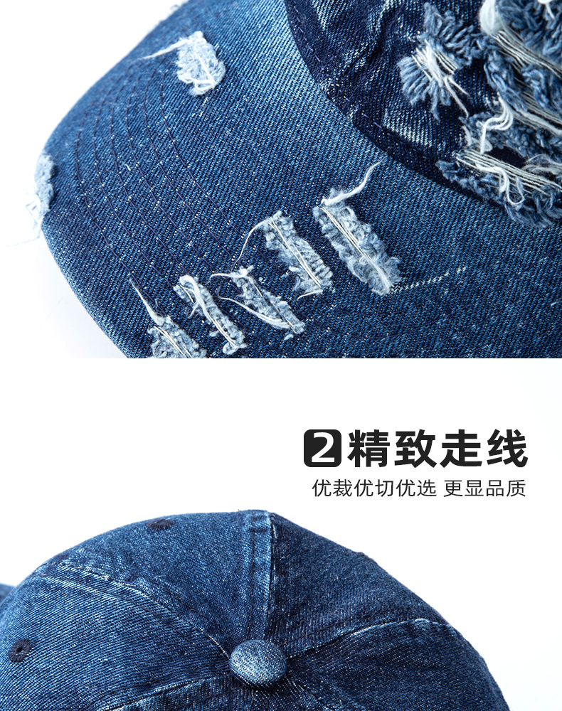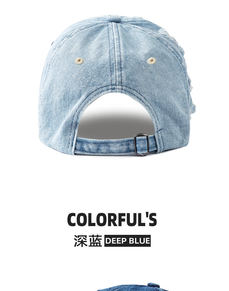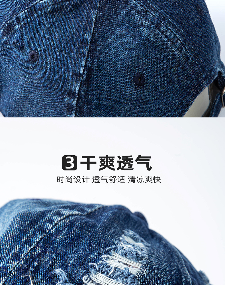 破洞棒球帽韩版日系女纯色光板牛仔棒球帽户外男防晒遮阳鸭舌帽