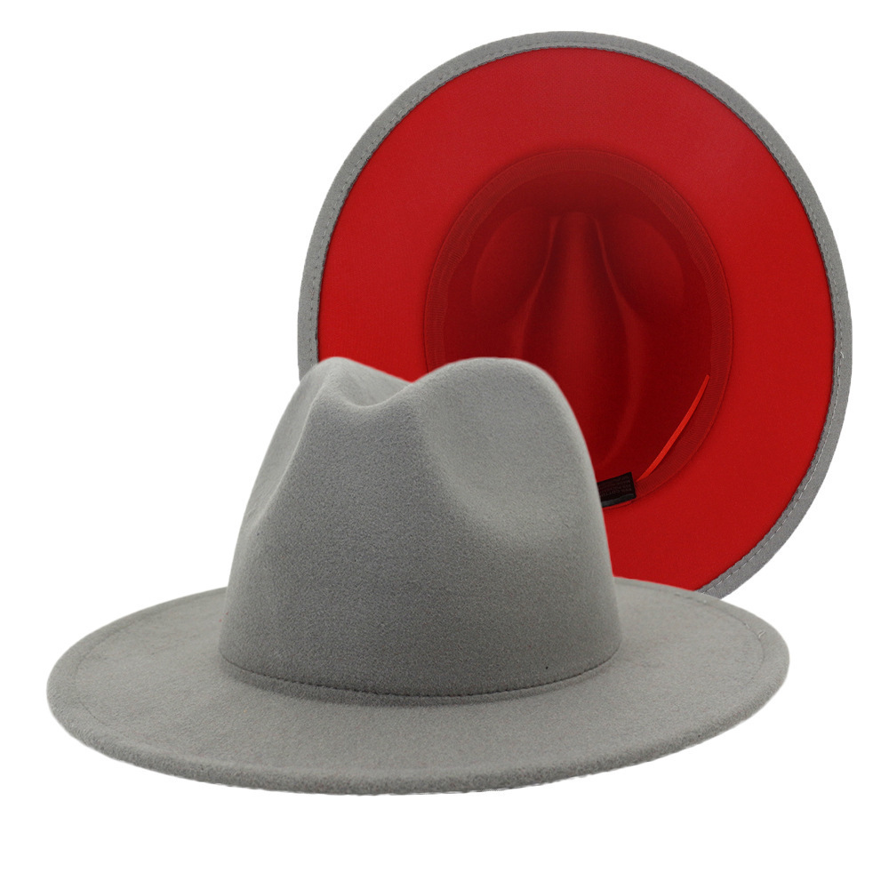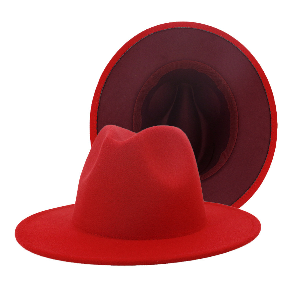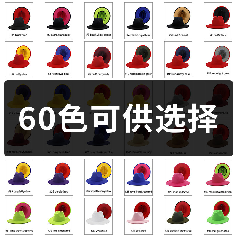 60色秋冬英伦风男女双面拼色复古爵士毛呢礼帽平檐大檐帽跨境批发