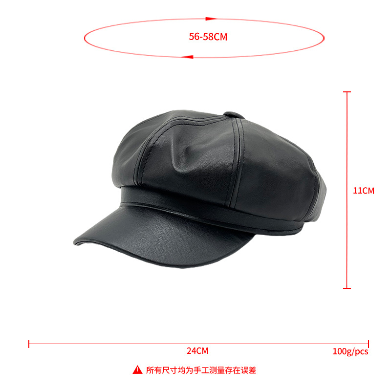 新款纯色PU皮质八角帽复古绅士风贝雷帽百搭网红退款画家帽子批发