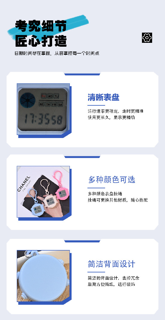 挂表考试用学生背包钥匙扣表广告计时器比赛秒表拍卖直播间计时器