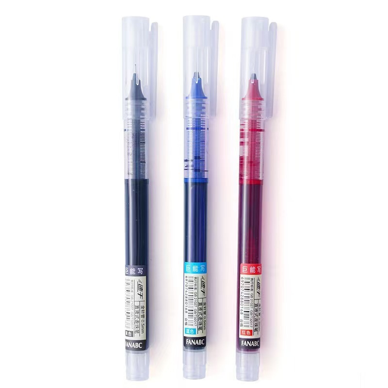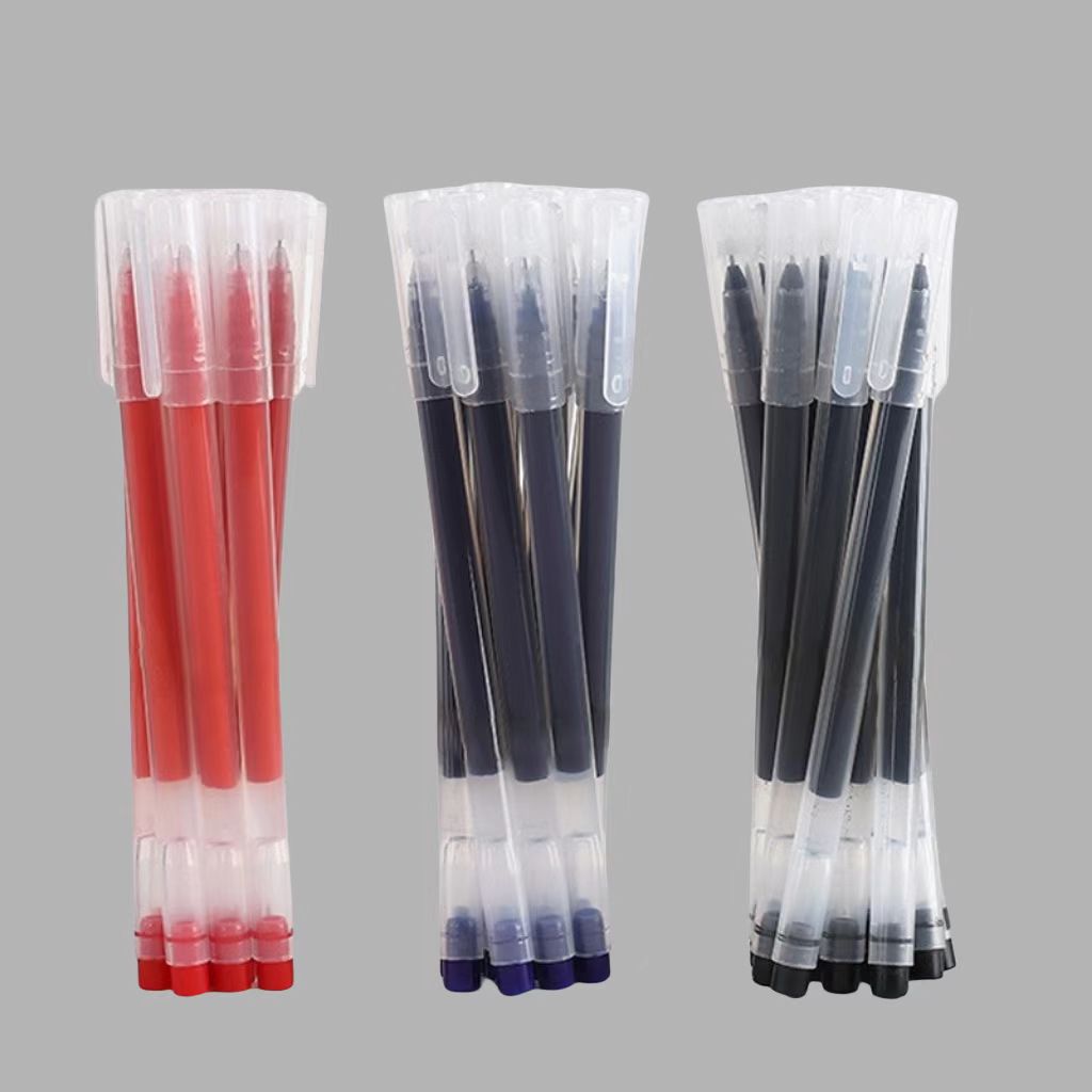 黑色按动 大容量碳素水笔0.5子弹头中性笔按动笔学生办公文具红色