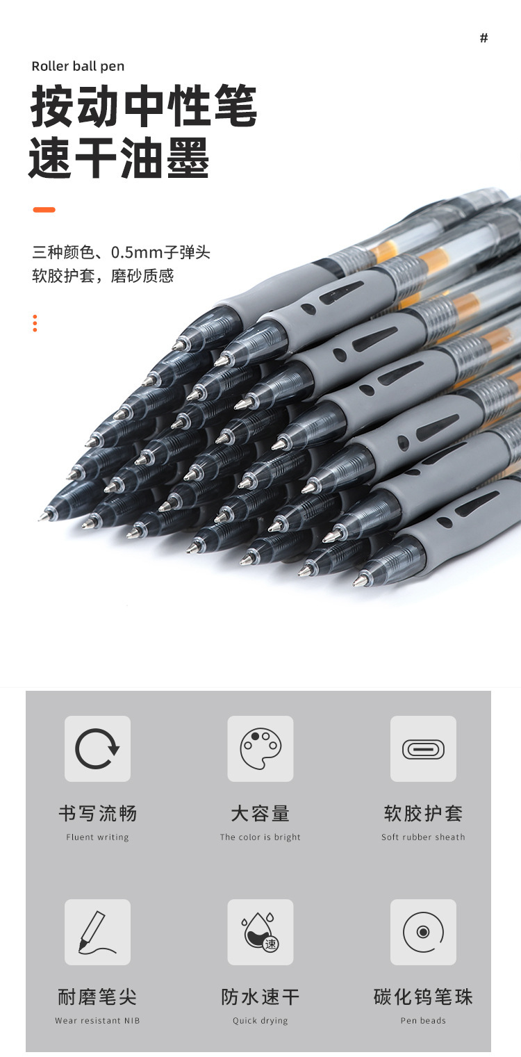 GP1008按动中性笔0.5m子弹头水性笔黑色碳素笔考试专用刷题签字笔
