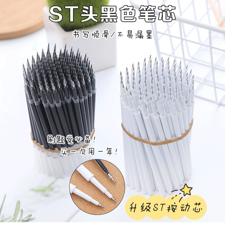 按动小白笔莫兰迪色st头中性笔速干刷题笔黑笔学生考试按压圆珠笔