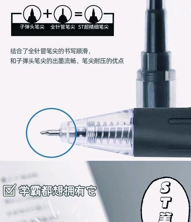 st头笔芯刷题中性笔芯0.5按动笔笔芯高颜值通用按动式圆珠笔批发