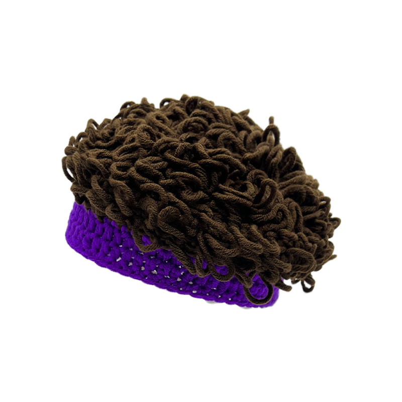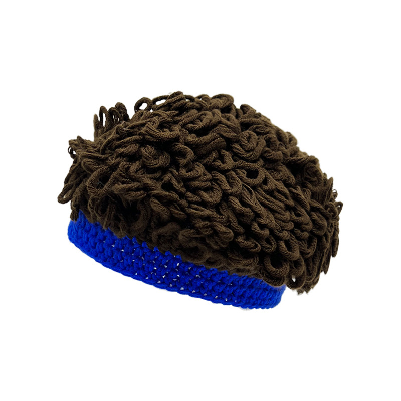 秋冬季个性潮流儿童假发帽保暖街舞表演套头帽男女童ins风针织帽