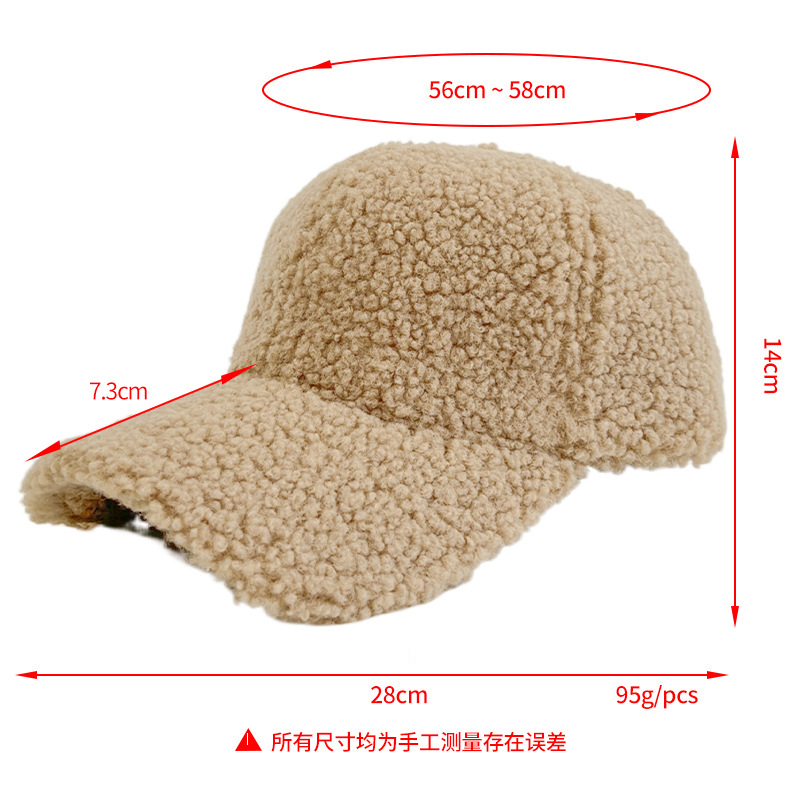 跨境潮流羊羔毛棒球帽女加绒保暖鸭舌帽子秋冬季纯色户外休闲帽子