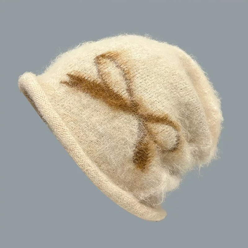松弛感甜妹可爱蝴蝶结拉毛套头帽子韩系ins休闲百搭护耳堆堆帽潮