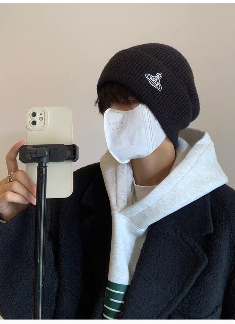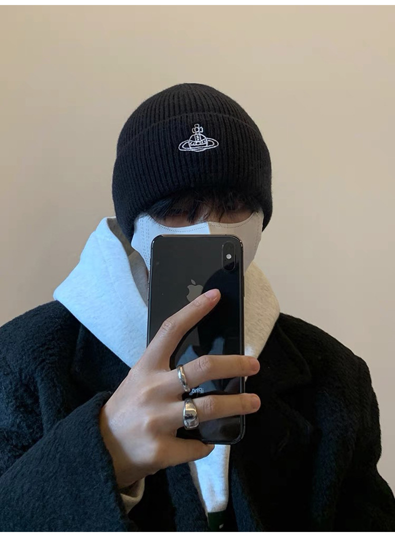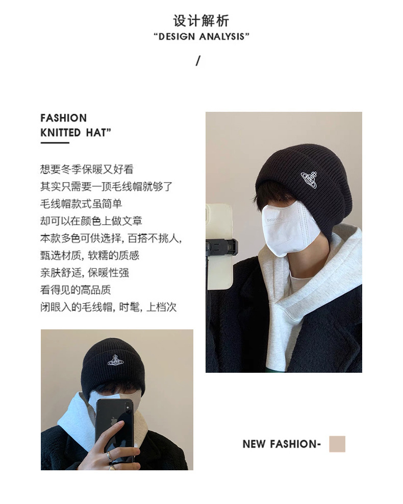 秋冬日本西太后秋冬季土星标含羊毛男女情侣冷帽保暖针织毛线帽子