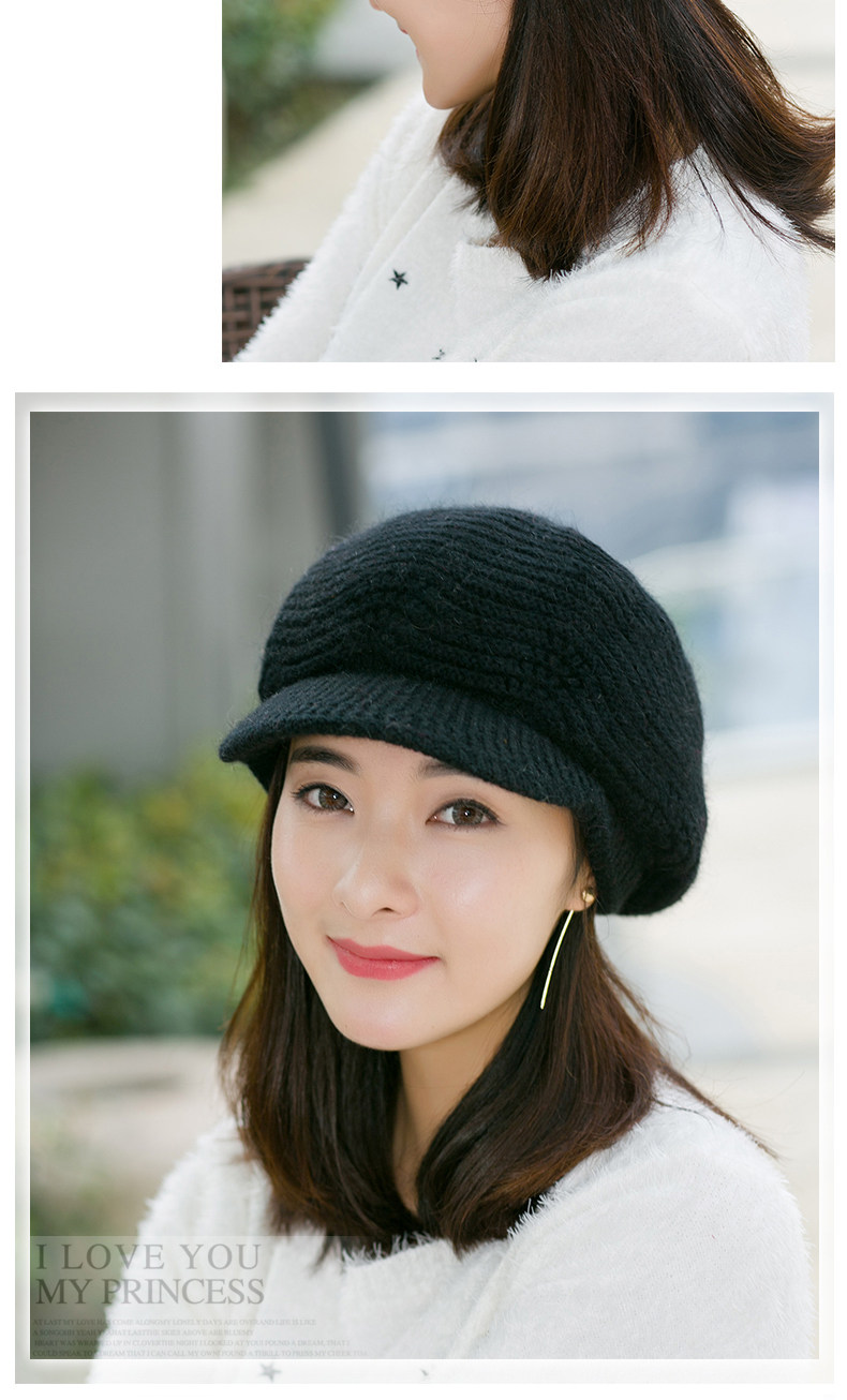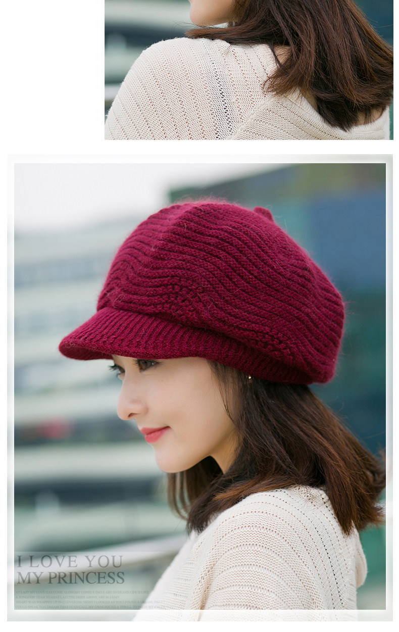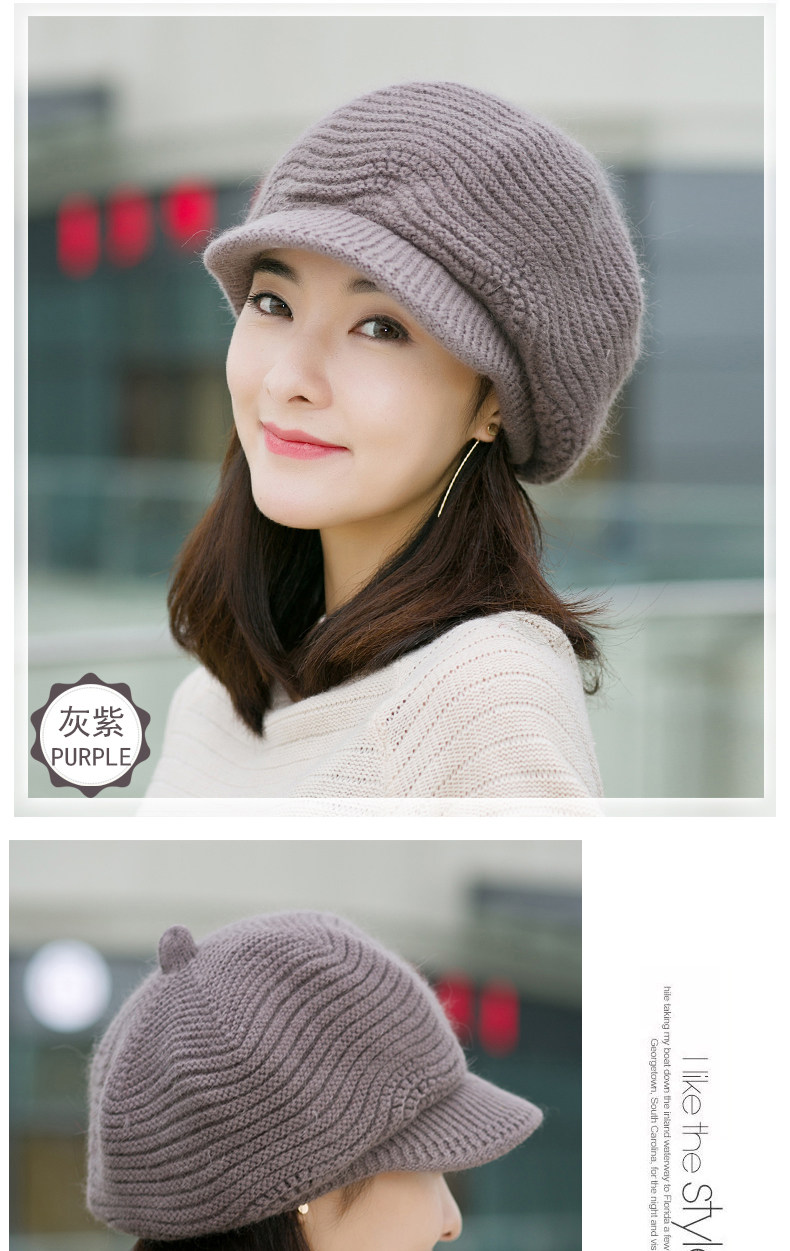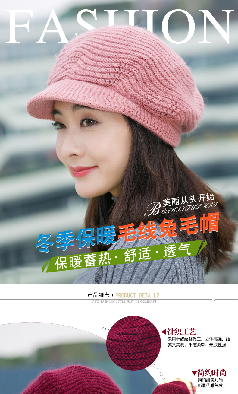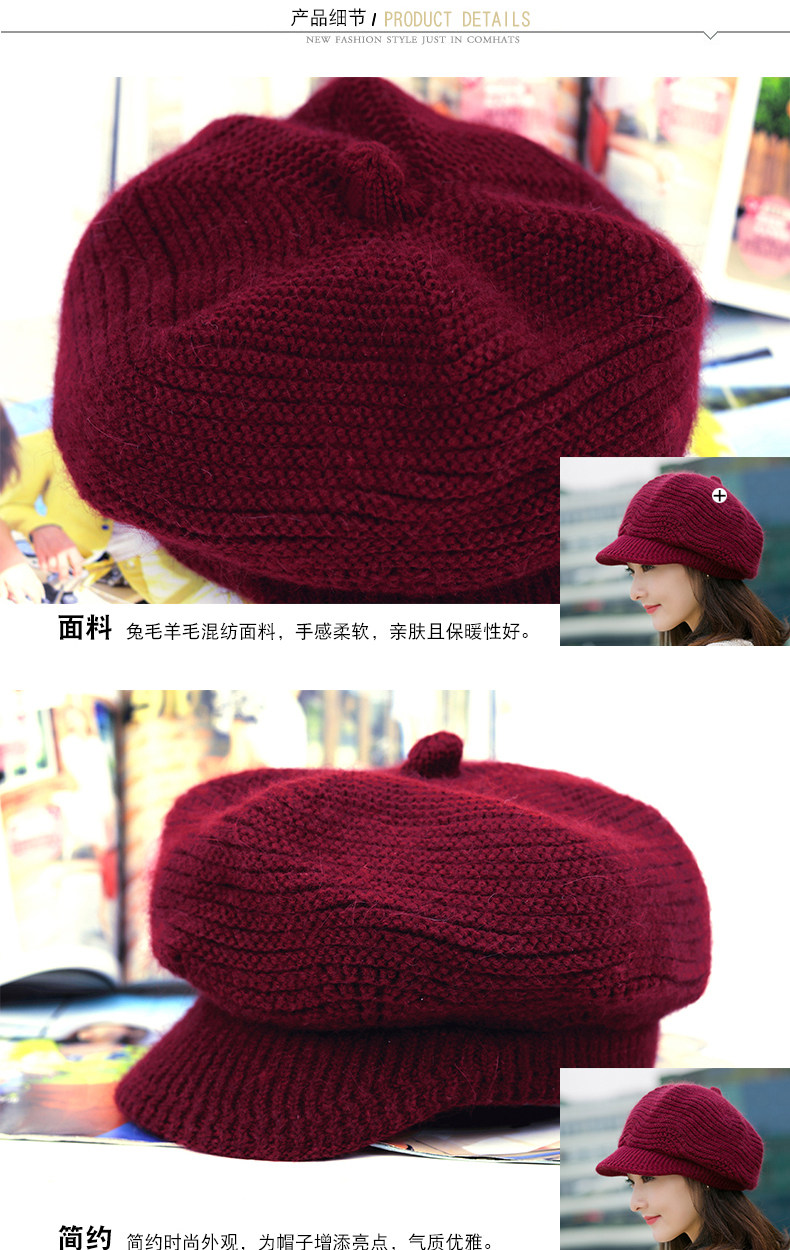 帽子女秋冬季八角帽针织毛线帽冬天保暖时尚贝雷帽韩版百搭兔毛帽