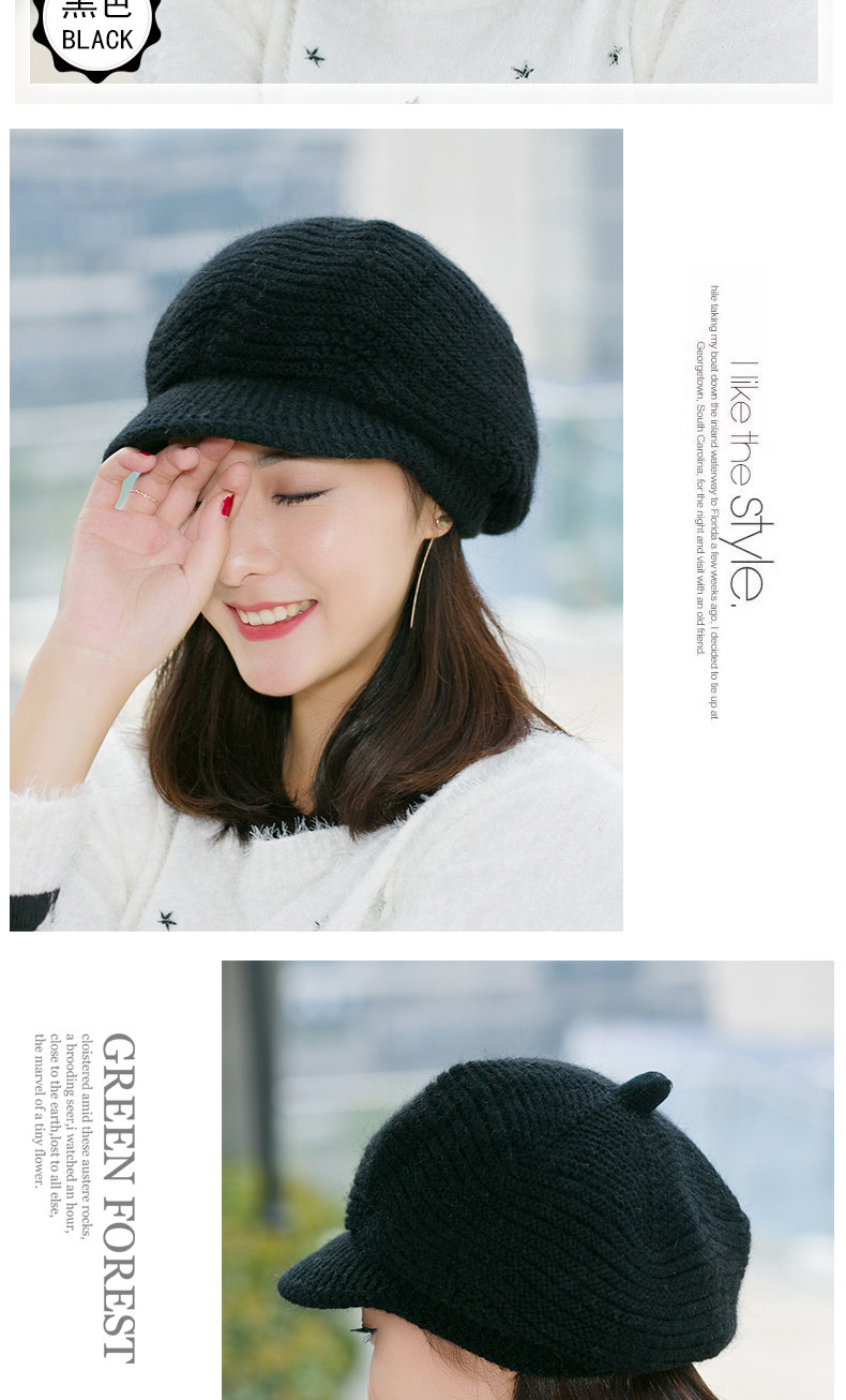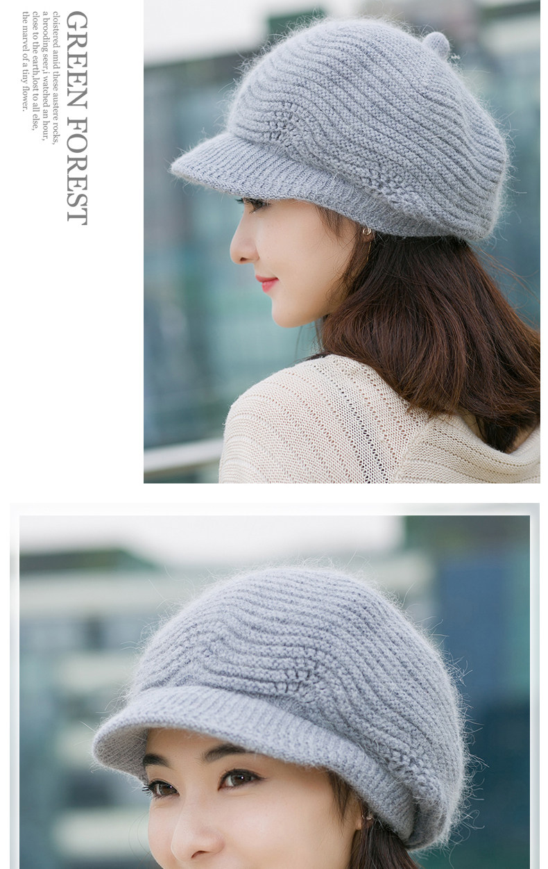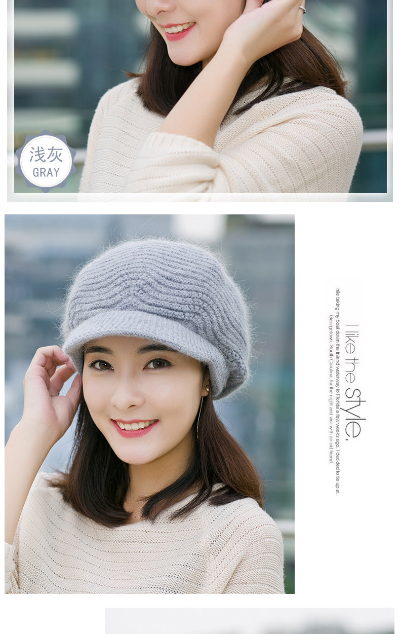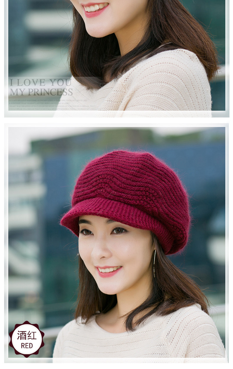 帽子女秋冬季八角帽针织毛线帽冬天保暖时尚贝雷帽韩版百搭兔毛帽
