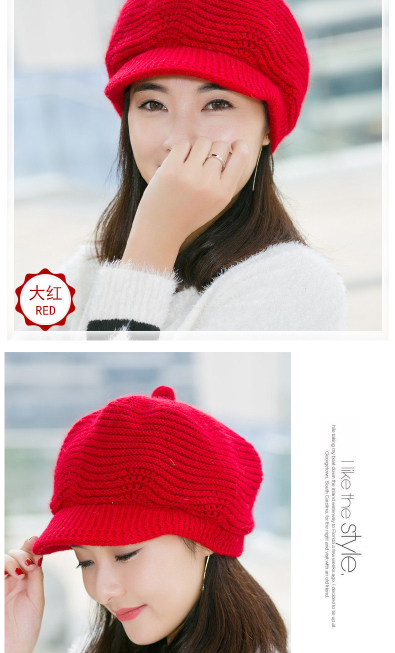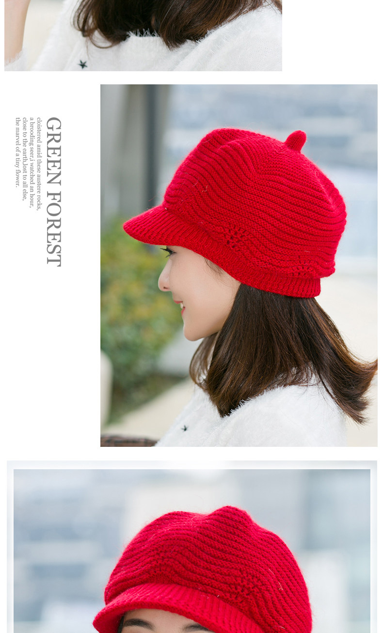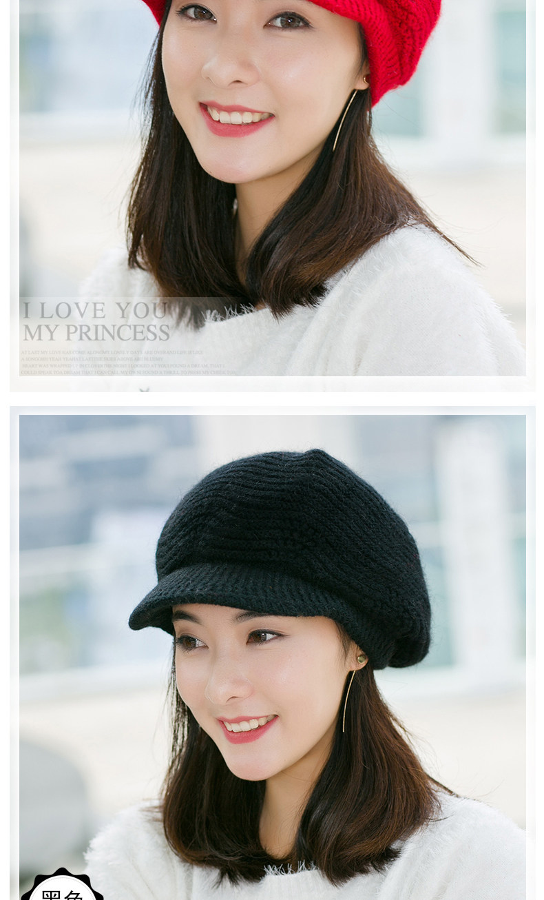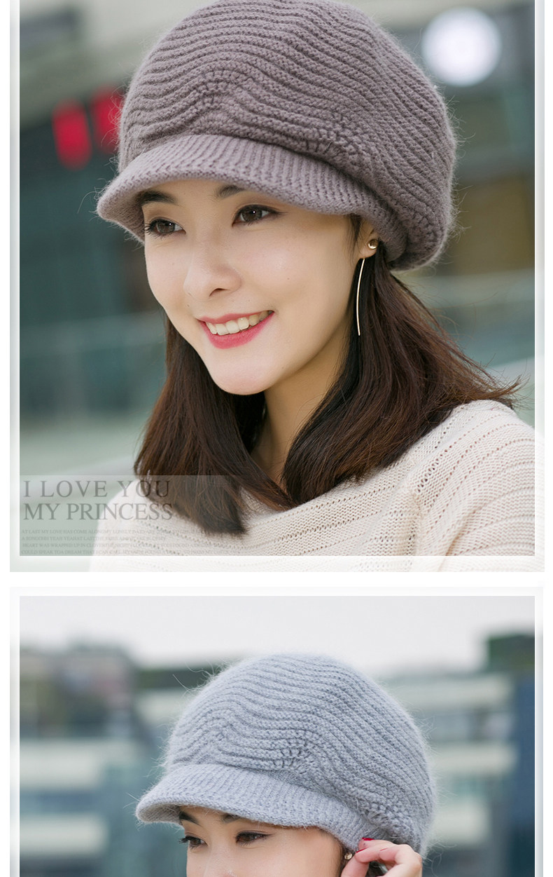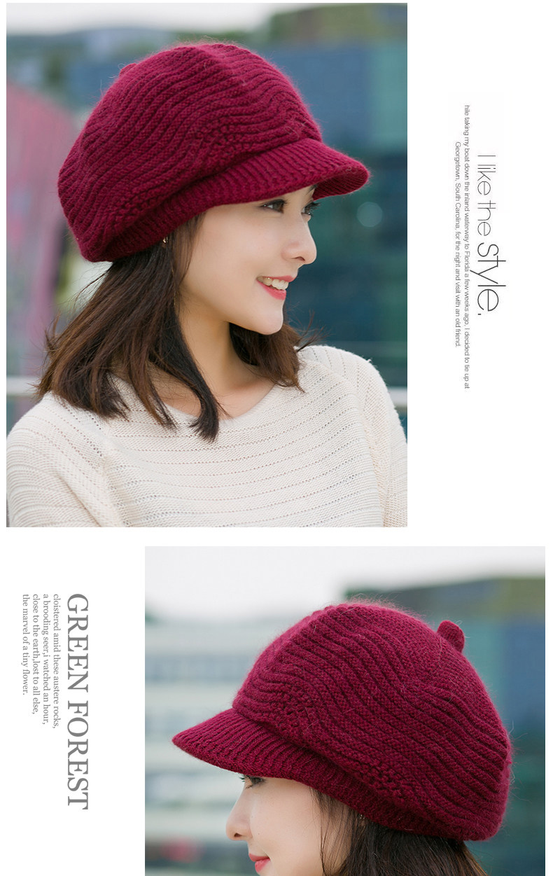 帽子女秋冬季八角帽针织毛线帽冬天保暖时尚贝雷帽韩版百搭兔毛帽