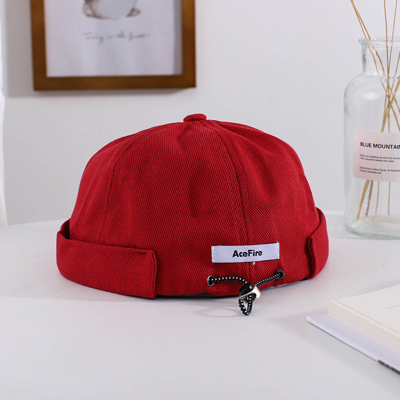 日系高街风标签松紧纯色瓜皮帽女潮雅痞帽嘻哈男地主帽流氓水手帽